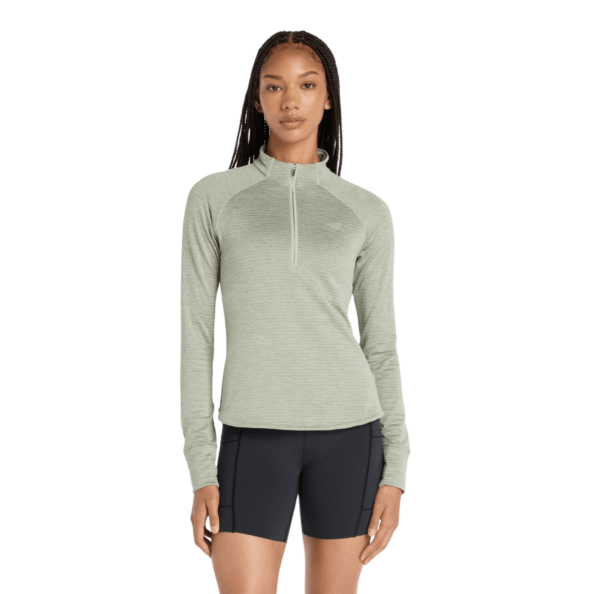 NEW BALANCE Athletics Heat Grid 1/2 Zip LS-Shirt Damen – warm, funktional & sportlich Das NEW BALANCE Athletics Heat Grid 1/2 Zip LS-Shirt Damen ist die perfekte Midlayer-Schicht für kalte Trainingstage. Mit der innovativen NB HEAT-Technologie bleibst du angenehm warm, während Feuchtigkeit zuverlässig vom Körper weggeleitet wird. Das weiche Heatgrid-Material aus recyceltem Polyester sorgt für hohen Tragekomfort und nachhaltige Funktionalität. Ein halber Reißverschluss ermöglicht flexible Belüftung, während die lange Ärmelkonstruktion mit integrierten Handschuh- und Manschettenlösungen zusätzlichen Schutz bei Kälte bietet. Eine diskrete Brusttasche mit Reißverschluss verstaut kleine Essentials sicher. Reflektierende Details erhöhen deine Sichtbarkeit bei Dämmerung und Dunkelheit. Highlights im Überblick NB HEAT-Technologie: hält warm & leitet Feuchtigkeit zuverlässig ab. Praktisch: versteckte Brusttasche mit Reißverschluss. Komfort: weiches Heatgrid-Material für ein angenehmes Tragegefühl. Sicher: reflektierendes Flying NB-Logo auf der Brust. Kälteschutz: lange Ärmel mit Handschuh- und Manschettenkonstruktion. Technische Details Material: 95 % recyceltes Polyester, 5 % Elasthan Passform: schmal & körperbetont Verschluss: halber Frontreißverschluss Das Athletics Heat Grid 1/2 Zip LS-Shirt Damen vereint Wärme, Funktion und sportlichen Style – ideal für Läufe und Workouts bei kaltem Wetter.