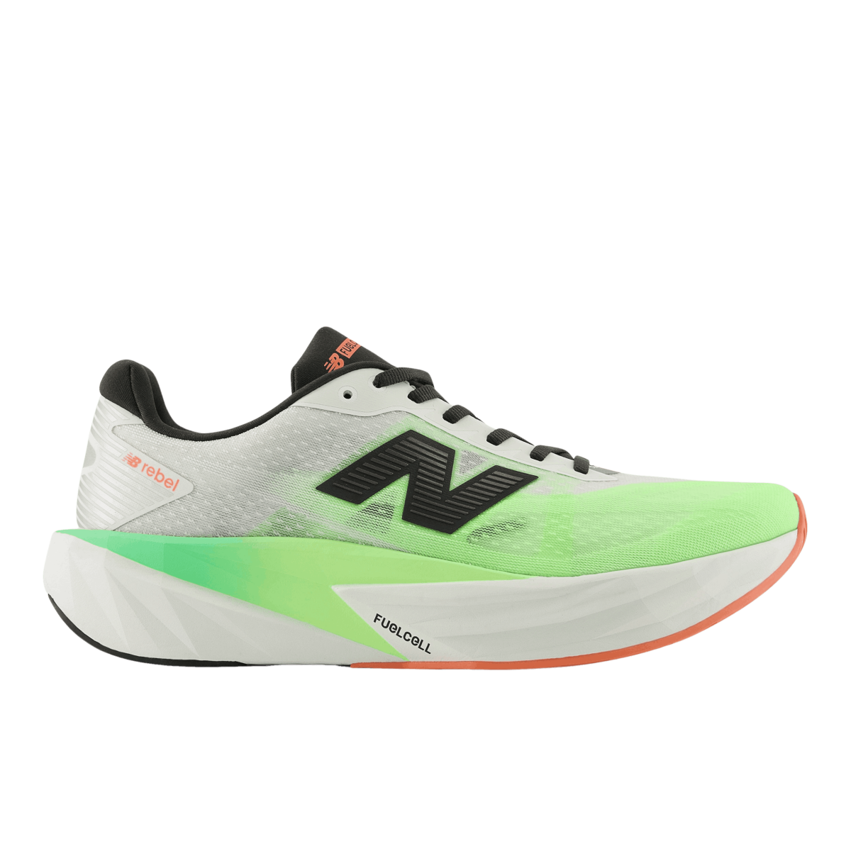New Balance FuelCell Rebel v5 Herren – Dynamik & Leichtigkeit für schnelle Läufe Der New Balance FuelCell Rebel v5 Herren ist ein Performance-Laufschuh für alle, die Geschwindigkeit, Reaktionsfreude und Leichtigkeit in einem Modell vereint haben möchten. Die PEBA-basierte FuelCell-Mittelsohle liefert ein außergewöhnlich energiegeladenes Laufgefühl mit hoher Rückfederung und einem direkten Abrollverhalten. So eignet sich der Schuh ideal für schnelle Trainingseinheiten, Tempodauerläufe oder den Wettkampfeinsatz. Die skulpturierte Zwischensohle unterstützt besonders den Vorfußbereich und sorgt für ein spürbar dynamisches Laufgefühl. Das atmungsaktive Engineered Mesh Obermaterial in Kombination mit der FANTOMFIT-Konstruktion und einer teilweise integrierten Zunge schmiegt sich passgenau an den Fuß an und bietet sicheren Halt – selbst bei hohen Geschwindigkeiten. Mit seiner leichten Bauweise von nur 225 g und einer Sprengung von 6 mm erfüllt der Rebel v5 die Anforderungen ambitionierter Läufer, die ein direktes, schnelles Laufgefühl suchen. Highlights im Überblick Energiegeladene Dämpfung: FuelCell-Mittelsohle (PEBA-Mischung) mit hoher Energierückgabe Dynamik im Vorfuß: skulpturierte Zwischensohle für reaktionsfreudiges Abrollen Sicherer Halt: FANTOMFIT-Konstruktion und integrierte Zunge für stabilen Sitz Leichtigkeit: nur 225 g Gewicht für schnelle Einheiten und Wettkämpfe Performance: optimal für Tempotrainings, Intervallläufe und ambitionierte Ziele Technische Details Sprengung: 6 mm Gewicht: ca. 225 g Stackhöhe: 36 mm (Ferse) / 30 mm (Vorfuß) Mittelsohle: FuelCell (PEBA-Mischung) Außensohle: 3 mm Gummi Obermaterial: Engineered Mesh mit FANTOMFIT Zunge: teilweise integriert (Gusseted Tongue) Fazit: Der FuelCell Rebel v5 Herren ist ein leichter, reaktionsfreudiger Laufschuh für ambitionierte Läufer, die bei Training und Wettkampf auf maximale Geschwindigkeit setzen.