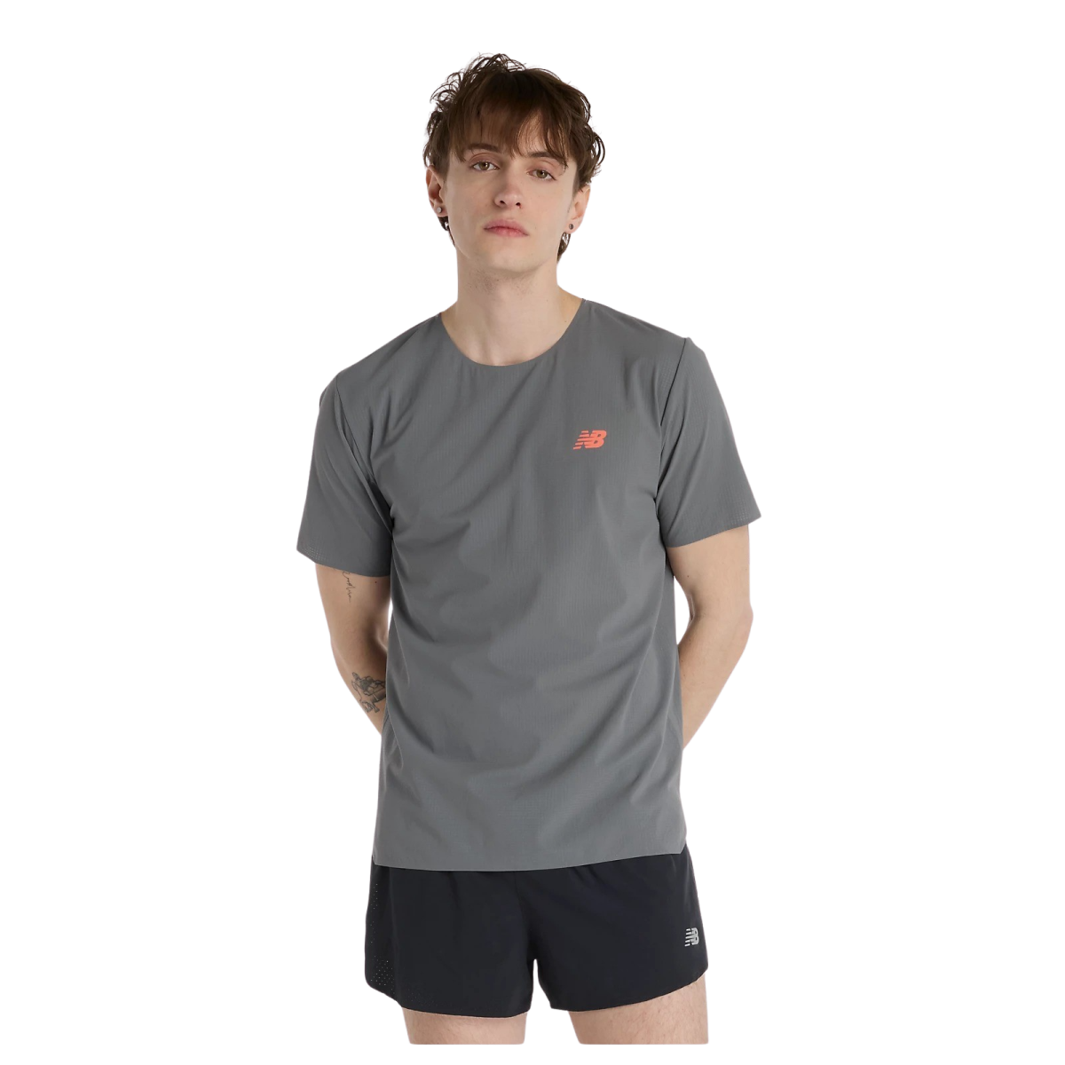 New Balance Race Day Ultra Light T-Shirt – Höchstleistung für dein nächstes Rennen Das Race Day Ultra Light T-Shirt ist speziell für Läuferinnen und Läufer entwickelt, die ein extrem leichtes, leistungsstarkes Laufshirt suchen. Dank innovativer NB ICE-Technologie wird Feuchtigkeit aktiv von der Haut abgeleitet und die Luftzirkulation verbessert, sodass du auch bei intensiven Läufen angenehm kühl bleibst. Die hochwertige Verarbeitung mit vollständig verklebtem Saum und Halsausschnitt sorgt für ein reibungsloses Tragegefühl, während die seitlichen Schlitze am Saum deine Bewegungsfreiheit optimieren. Highlights des Race Day Ultra Light T-Shirts: NB ICE-Technologie: Unterstützt Feuchtigkeitsableitung und Luftzirkulation für ein trockenes, kühles Tragegefühl Ultraleicht & kaum spürbar: Perfekt für schnelle Läufe und Wettkämpfe Verklebte Nähte: Halsausschnitt und unterer Saum sind vollständig verklebt für höchsten Tragekomfort Seitliche Schlitze am Saum: Erhöhte Bewegungsfreiheit bei jeder Pace Reflektierende Details: Erhöhte Sichtbarkeit bei schlechten Lichtverhältnissen Rundhalsausschnitt & kurze Ärmel: Klassisches, sportliches Design Material: 74 % recyceltes Nylon, 26 % Lycra® Ultraleichte, schmelzende Garne für ein weiches, kaum spürbares Tragegefühl Passform & Gewicht: Standard-Passform: Sitzt locker am Körper, ohne einzuengen Extrem leichtes Design für maximale Performance Mit dem Race Day Ultra Light T-Shirt bist du bestens für dein nächstes Rennen oder intensives Training ausgestattet – für ein angenehmes Laufgefühl, egal wie schnell du unterwegs bist.