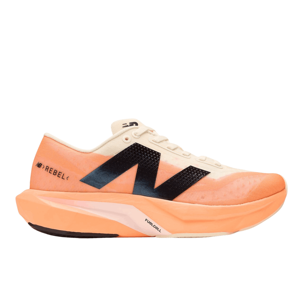 New Balance FuelCell Rebel v4 – Leicht, schnell und vielseitig Der New Balance FuelCell Rebel v4 ist der ideale Laufschuh für Damen, die Tempo und Komfort suchen. Mit seinem leichten Design und der innovativen FuelCell-Technologie ist er für tägliche Trainingseinheiten, lange Läufe und schnelle Wettkämpfe gleichermaßen geeignet. Die stark rückfedernde FuelCell-Mittelsohle sorgt für maximalen Vortrieb und Geschwindigkeit, während das technische Strick-Obermaterial mit nahtlosen Overlays eine leichte, atmungsaktive und stützende Passform bietet. Die unterlegte Zungenkonstruktion und der Schnürverschluss garantieren zusätzlichen Halt und Komfort, damit du dich voll und ganz auf deinen Lauf konzentrieren kannst. Das Design des Rebel v4 orientiert sich an klassischen Wettkampfschuhen und vermittelt schon beim Anziehen ein Gefühl von Dynamik und Geschwindigkeit. Reflektierende Akzente fangen das Licht ein und sorgen für bessere Sichtbarkeit bei schlechten Lichtverhältnissen. Produktdetails: FuelCell-Schaum für spürbaren Vortrieb und Energie Leichtes Strick-Obermaterial mit nahtlosen Overlays für Komfort und Struktur Unterlegte Zungenkonstruktion für eine schmale, stützende Passform Schnürverschluss für sicheren Halt Reflektierende Akzente für bessere Sichtbarkeit Technische Details: Sprengung: 6 mm Gewicht: 168 g Der New Balance FuelCell Rebel v4 ist der perfekte Begleiter für Läuferinnen, die Geschwindigkeit, Leichtigkeit und Komfort in einem Schuh vereint haben möchten. Starte durch und bringe dein Training auf ein neues Level!
