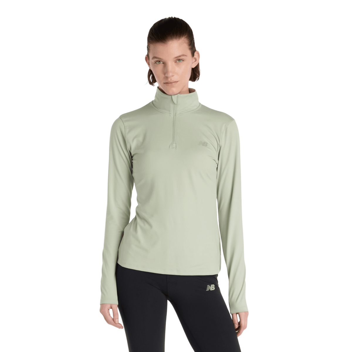 NEW BALANCE Sport Essentials Space Dye Quarter Zip LS-Shirt Damen – funktional & stylisch Das NEW BALANCE Sport Essentials Space Dye Quarter Zip LS-Shirt Damen vereint Funktion und Style in einem vielseitigen Midlayer. Dank der NB DRY-Technologie wird Feuchtigkeit effizient vom Körper abgeleitet, sodass du auch bei intensiven Trainingseinheiten angenehm trocken bleibst. Das Poly-Strickgewebe mit Recyclinganteil sorgt für hohen Tragekomfort, während der körperbetonte Schnitt optimale Bewegungsfreiheit bietet. Mit dem Viertel-Reißverschluss kannst du die Belüftung flexibel anpassen, und die langen Ärmel mit Daumenschlaufen geben zusätzlichen Halt. Reflektierende Details verbessern die Sichtbarkeit bei Dämmerung oder Dunkelheit. Highlights im Überblick NB DRY-Technologie: schnelltrocknend & feuchtigkeitsableitend. Praktisch: Viertel-Reißverschluss für flexible Belüftung. Komfort: Poly-Strickgewebe mit recyceltem Material. Daumenschlaufen: zusätzlicher Halt & Schutz bei Kälte. Reflektierend: NB-Logo für mehr Sichtbarkeit. Technische Details Material: 84 % recyceltes Polyester, 16 % Elasthan Gewebe: Poly-Strick Passform: schlank & körperbetont Verschluss: Viertel-Reißverschluss Das Sport Essentials Space Dye Quarter Zip LS-Shirt Damen überzeugt mit Funktionalität und Style – perfekt für dein Training und sportliche Freizeitlooks.