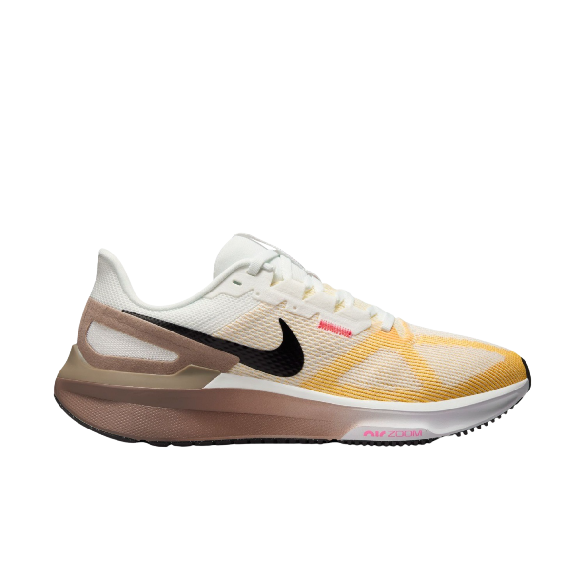 Der Nike AIR ZOOM STRUCTURE 25 bietet Stabilität, wo du sie benötigst, und Dämpfung, wo du sie dir wünschst. Der Stabilitätsschuh aus dem Hause Nike sorgt für ein sicheres Gefühl im Schuh, welches Dich auch bei höherer Geschwindigkeit unterstützt. Die reaktive Zwischensohle im Zusammenspiel mit der angenehmen Passform und dem sicheren Fersenbereich fördert ein geschmeidiges Laufgefühl, welches Dich auf Deinen Trainingseinheiten begleitet. Die Außensohle mit den Flexkerben lässt Deinen Fuß weich abrollen und greift besonders gut auf Asphalt und befestigten Wegen. Auch in Sachen Nachhaltigkeit kann sich der Schuh sehen lassen, denn es wurden recycelte Materialien verwendet, um den CO2-Austoß zu verringern. Er ist Teil der Move-to-zero-Innitiative von Nike. Produktdetails des Nike AIR ZOOM STRUCTURE 25 für Damen: bequemes, leichtes Mesh Gewebe im Obermaterial, atmungsfreudig und strapazierfähig Zehenbox mit viel Platz für Deine Zehen Mittelsohle aus Cushlon 3.0 Dämpfungsschaum bewirkt einen federnden, dynamischen Lauf Ein Air Zoom Element unter dem Vorfuß erhöht die dämpfenden Eigenschaften Stabile Konstruktion am Innenfuß gegen Überpronation Schuhrand und Zunge sind weich abgepolstert und sorgen für eine schöne Passform Einlegesohle in anatomischer Form für noch mehr Komfort Neugestalteter Fersenbereich mit verstärkter Fersenkappe sitzt weich und flexibel um die Achillessehne und beugt Reizungen vor Flexible Außensohle aus Gummi stabilisiert gleichzeitig und sorgt für Grip Gewicht: 263g Sprengung: 10mm
