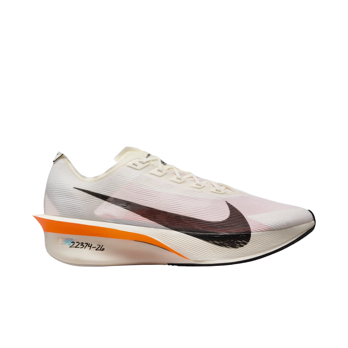 Nike ZoomX Vaporfly NEXT% 4 Damen – Die neue Referenz für deinen Wettkampftag Der Nike Vaporfly NEXT% 4 für Damen ist leichter, dynamischer und effizienter als je zuvor. Mit zahlreichen gezielten Optimierungen ist dieser Schuh dein ultimativer Partner für Wettkämpfe von 5 km bis Marathon. Die durchgehende Carbonfaser-Flyplate mit höherem Winkel kombiniert sich mit dem ultraleichten und reaktionsfreudigen ZoomX-Schaumstoff zu einer explosiven Mischung aus Vortrieb und Dämpfung. Der neu konzipierte Drop von 6 mm sorgt dabei für noch mehr Dynamik und einen effizienteren Abdruck. Das überarbeitete Mesh-Obermaterial spart nicht nur Gewicht, sondern bietet auch eine passgenaue, stabile Passform. Eine gewölbte Fersengeometrie und dünneres Gummi an der Außensohle reduzieren zusätzlich das Gesamtgewicht – ohne Kompromisse bei Stabilität oder Traktion. Produktdetails: ZoomX-Mittelsohle für maximale Energierückgabe Durchgehende Carbonfaserplatte mit verbessertem Winkel für mehr Vortrieb Speziell entwickeltes Mesh für geringes Gewicht und Halt Reduziertes Sohlenprofil für mehr Tempo und Stabilität Drop: 6 mm Gewicht: ca. 152 g (EU 39) Bereit für neue Rekorde? Mit dem Vaporfly 4 erreichst du dein nächstes Ziel mit maximaler Effizienz.