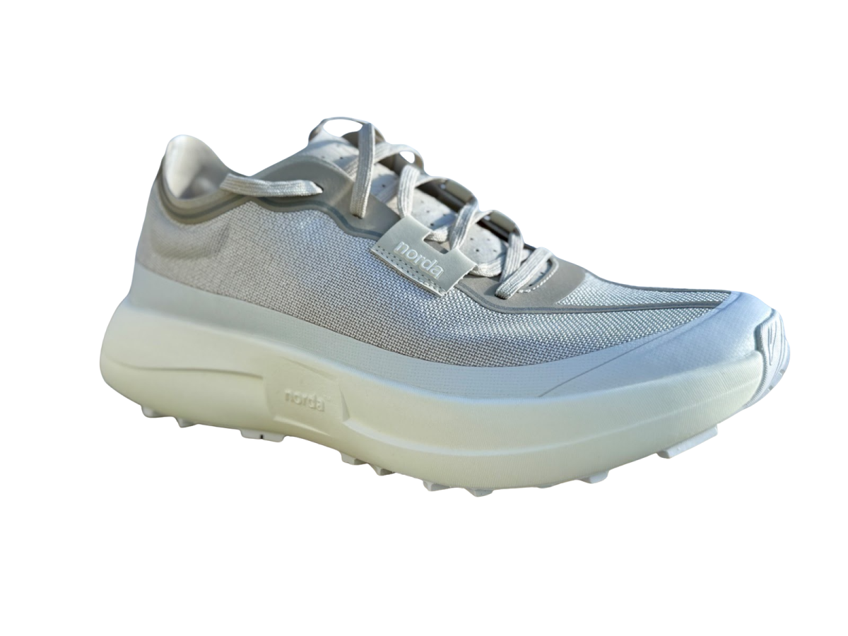 Norda The 005 Herren – Ultraleicht, Maximaler Grip, Höchste Rennperformance Der Norda The 005 Herren ist ein revolutionärer Trailrunning-Schuh für Rennbedingungen auf anspruchsvollen Strecken. Mit nur 211 g (US Herren 8.5) bietet er ein unschlagbares Verhältnis von Leichtigkeit, Reaktionsfreudigkeit und Stabilität. Das Bio-Dyneema® Mesh-Obermaterial ist atmungsaktiv, extrem abriebfest und leitet Wasser schnell ab. Die neue Arnitel® (TPEE) Mittelsohle sorgt für außergewöhnliche Dämpfung und +80 % Energierückgabe – ideal für explosive Vortriebe. Dank der weltweit ersten Vibram® Megagrip® Elite Außensohle mit 4 mm Stollenprofil bietet der Schuh maximalen Grip auf allen Trailbedingungen. Das Norda™ Fit Lock System sichert den Fuß für stabilen Halt, während die perforierte Mikrosuede-Zunge für angenehme Temperaturregulierung sorgt. Ein Schuh, der für Race Days – und darüber hinaus – gemacht ist. Technische Details: Bio-Dyneema® Mesh : Atmungsaktiv, abriebfest Arnitel® (TPEE) Mittelsohle : Ultraleicht, energierückführend Vibram® Megagrip® Elite Außensohle : Maximaler Grip Sprengung : 7 mm (Ferse: 28.5 mm / Vorfuß: 21.5 mm) Gewicht : 211 g (US Herren 8.5) Der Norda The 005 – entwickelt für ultraschnelle Rennen auf technischem Terrain.