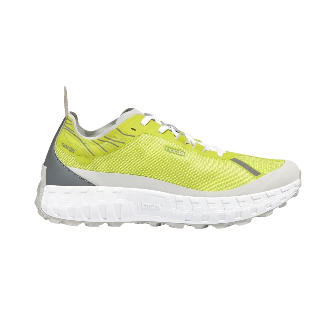 Norda The 001 Herren – Ultimative Performance für den Trail Der Norda The 001 Herren ist die perfekte Kombination aus Leichtigkeit, Langlebigkeit und maximaler Performance . Dieser Trailrunning-Schuh setzt mit seiner hochinnovativen Materialwahl und Vibram®-Technologie neue Maßstäbe für ambitionierte Läufer. Das nahtlose Bio-Dyneema® Obermaterial ist das leichteste und zugleich widerstandsfähigste Gewebe der Welt , das für herausragende Abriebfestigkeit und Stabilität sorgt. Das norda™ Lock System gewährleistet eine ultraleichte, sockenähnliche Passform , die den Fuß selbst in anspruchsvollem Gelände sicher hält. Für ein dynamisches und komfortables Laufgefühl sorgt die Vibram® SLE Mittelsohle , kombiniert mit einer eTPU-Einlegesohle , die für eine hohe Energierückgabe und Stoßabsorption sorgt. Die speziell entwickelte norda™ x Vibram® Außensohle mit Litebase® und Megagrip® garantiert perfekten Grip auf technischen Trails, felsigen Passagen und rutschigem Untergrund . Produktdetails: Nahtloses Bio-Dyneema® Obermaterial : Leicht, extrem robust und abriebfest. Norda™ Lock System : Passgenauer Halt und hohe Stabilität. Vibram® SLE Mittelsohle : Hohe Reaktionsfreudigkeit und Dämpfung. Vibram® Litebase® Außensohle mit Megagrip® : Optimaler Halt und Traktion auf jedem Terrain. Reflektierende Details : Rundum-Sichtbarkeit für sicheres Laufen. 5 mm Stollen : Sorgt für maximalen Grip auf technischen Trails. Sprengung : 5 mm (Ferse: 26 mm / Vorfuß: 21 mm). Gewicht : 268 g (US Herren 8.5). Mit dem Norda The 001 Herren bist du für alle Herausforderungen auf dem Trail gerüstet – egal ob steile Anstiege, technische Abstiege oder lange Ultra-Distanzen.