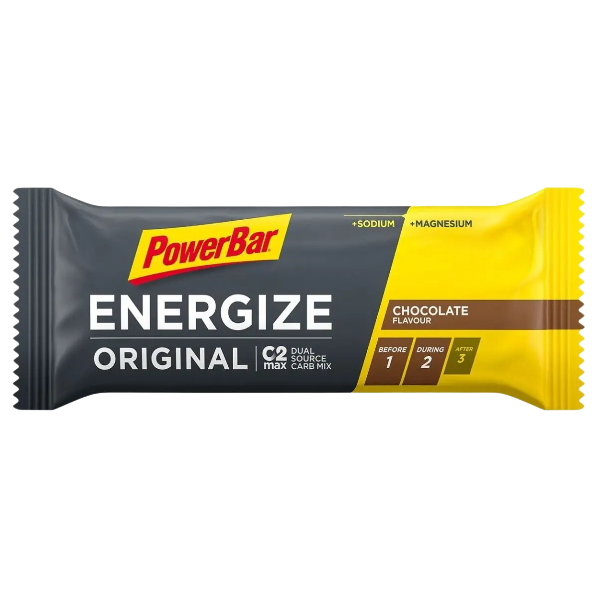 Powerbar ENERGIZE RIEGEL ORIGINAL – CHOCOLATE – Ideal vor und/oder während der Belastung, dazu ausreichend Flüssigkeit. Damit du im intensiven Training und im Wettkampf alles geben kannst, sollten deine Energiespeicher nicht nur vor dem Sport aufgefüllt sein, sondern auch währenddessen solltest du deinem Körper regelmäßig Kohlenhydrate zuführen. PowerBar hat schon im Jahr 1986 den weltweit ersten Kohlenhydratriegel entwickelt. Der Energize Original Riegel ist ein idealer Kohlenhydratlieferant in fester Form, aber trotzdem leicht zu kauen. Mit C2MAX liefert er dir eine wissenschaftlich entwickelte Kohlenhydratmischung mit einem 2:1 Verhältnis aus Glukose- und Fruktosequellen, sowie zur Unterstützung des Mineralienhaushalts Natrium und Magnesium. Bewährte Funktionalität mit C2MAX Dual Source Carb Mix Mit extra Natrium, das durch Schweiß mengenmäßig am meisten verlorene Elektrolyt Mit extra Magnesium, zur Unterstützung des normalen Energiestoffwechsels Frei von Farbstoffen und Konservierungsstoffen (lt. Gesetz) Für Vegetarier geeignet Gute Verträglichkeit Alle PowerBar Produkte (ausgenommen: Electrolyte Drink Konzentrate) sind auf der Kölner Liste® aufgeführt, dadurch bieten wir den Athleten noch mehr Sicherheit und Vertrauen. Geschmacksrichtung: Chocolate