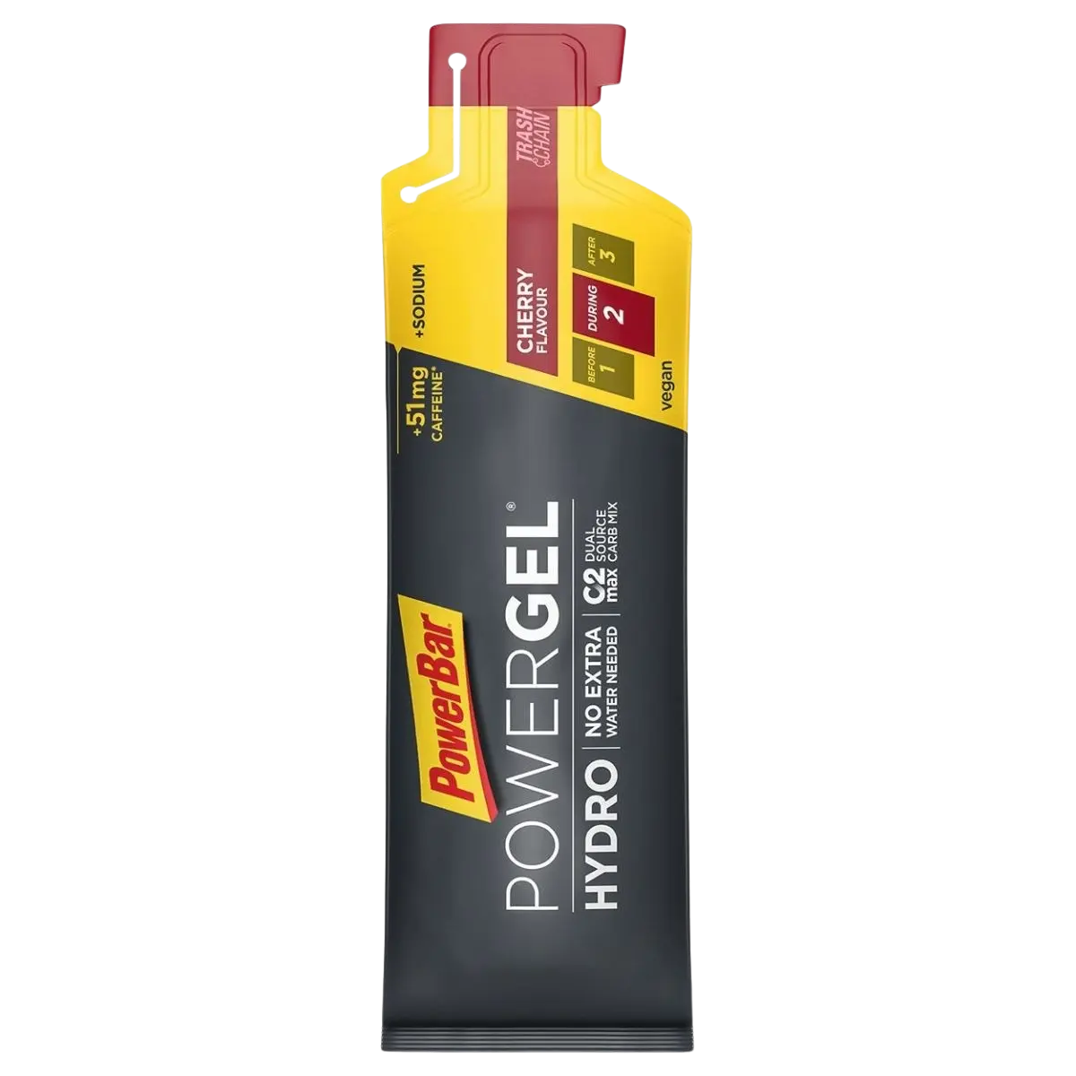 Während der letzten Stunde hast du alles gegeben und willst jetzt nochmal ein PowerGel® bei dem kein zusätzliches Nachtrinken notwendig ist? Dann solltest du das PowerBar PowerGel® Hydro probieren. Durch C2MAX liefert es dir Kohlenhydrate in einem wissenschaftlich entwickeltem 2:1 Verhältnis von Glukose- und Fruktosequellen. Die flüssige Konsistenz des Gels lässt sich leicht schlucken und erfordert somit kein direktes Nachtrinken, wie bei anderen Gelen. Ideal für Läufer oder für Sportler die gerne eine flüssigere Gelvariante bevorzugen. Produktdetails des PowerBar Powergel Hydro: Bewährte Funktionalität mit C2MAX Dual Source Carb Mix und ca. 200 mg Natrium pro Beutel Mit natürlichen Aromen, in diesem Fall Geschmacksrichtung Cherry enthält zudem 76 mg Koffein pro 100 ml Vegan Innovative Verpackung: leicht zu öffnen und verhindert zusätzlichen Abfall durch „Trash Chain“ Das PowerBar PowerGel Hygdro ist auf der Kölner Liste® aufgeführt, d.h. es ist frei von verbotenen Substanzen. Inhalt: 67ml Verzehrempfehlung: Nimm nach Bedarf 1 Beutel in regelmäßigen Abständen während der Belastung. Geschmacksrichtung mit: 1-2 Beutel/ Tag. aufgrund des Koffeingehaltes ist dieses Produkt NICHT für Schwangere und Stillende Frauen geeignet Im Rahmen einer abwechslungsreichen und ausgewogenen Ernährung und einer gesunden Lebensweise. Zutaten Wasser, Maltodextrin, Fruchtsaftkonzentrate (12%) (Apfel, Sauerkirsche), Fruktose, Natriumchlorid, Natriumcitrate, Säuerungsmittel (Citronensäure), natürliches Kirscharoma mit anderen natürlichen Aromen, Konservierungsstoffe (Kaliumsorbat, Natriumbenzoat), Stabilisator (Xanthan), Koffein (0,07%).