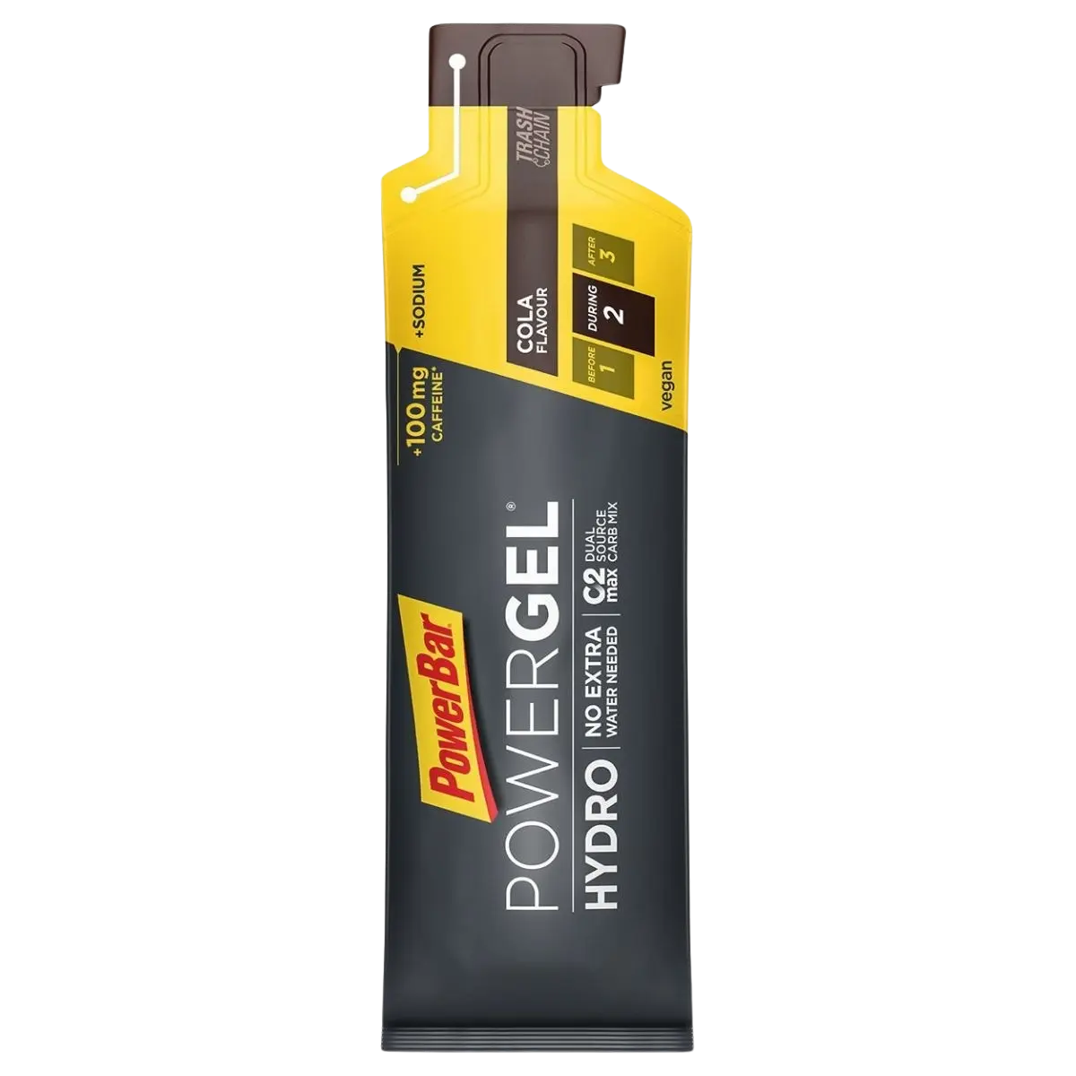 Während der letzten Stunde hast du alles gegeben und willst jetzt nochmal ein PowerGel® bei dem kein zusätzliches Nachtrinken notwendig ist? Dann solltest du das PowerBar PowerGel® Hydro probieren. Durch C2MAX liefert es dir Kohlenhydrate in einem wissenschaftlich entwickeltem 2:1 Verhältnis von Glukose- und Fruktosequellen. Die flüssige Konsistenz des Gels lässt sich leicht schlucken und erfordert somit kein direktes Nachtrinken, wie bei anderen Gelen. Ideal für Läufer oder für Sportler die gerne eine flüssigere Gelvariante bevorzugen. Bewährte Funktionalität mit C2MAX Dual Source Carb Mix und ca. 200 mg Natrium pro Beutel Mit natürlichen Aromen Vegan Innovative Verpackung: leicht zu öffnen und verhindert zusätzlichen Abfall durch „Trash Chain“ Geschmacksrichtung Cola: enthält zusätzlich 100 mg Koffein pro Beutel, welches hilft die Aufmerksamkeit zu erhöhen und Konzentration zu verbessern Geschmacksrichtungen Mojito und Cherry: enthalten zusätzlich 51 mg Koffein pro Beutel Alle PowerBar Produkte (ausgenommen: Electrolyte Drink Konzentrate) sind auf der Kölner Liste® aufgeführt, dadurch bieten wir den Athleten noch mehr Sicherheit und Vertrauen. Inhalt: 67ml Verzehrempfehlung: Nimm nach Bedarf 1 Beutel in regelmäßigen Abständen während der Belastung. Geschmacksrichtung ohne Koffein: 1-4 Beutel/ Tag. Geschmacksrichtung Mojito und Cherry: 1-3 Beutel/Tag. Geschmacksrichtung Cola: 1 Beutel pro Tag während intensiver sportlicher Tätigkeit verzehren. Geschmacksrichtungen mit Koffein: Erhöhter Koffeingehalt. Für Kinder und schwangere oder stillende Frauen nicht empfohlen. (Mojito & Cherry: 73mg/100ml, 51mg/Beutel; Cola: 150mg/100ml, 100mg/Beutel). Im Rahmen einer abwechslungsreichen und ausgewogenen Ernährung und einer gesunden Lebensweise. Zutaten Wasser, Maltodextrin, Fruktose, Natriumchlorid, natürliche Aromen, Säuerungsmittel (Citronensäure), Natriumcitrate, Koffein (0,1%), Konservierungsstoffe (Kaliumsorbat, Natriumbenzoat), Stabilisator (Xanthan).