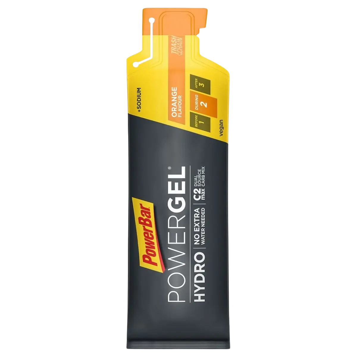 Während der letzten Stunde hast du alles gegeben und willst jetzt nochmal ein PowerGel® bei dem kein zusätzliches Nachtrinken notwendig ist? Dann solltest du das PowerBar PowerGel® Hydro probieren. Durch C2MAX liefert es dir Kohlenhydrate in einem wissenschaftlich entwickeltem 2:1 Verhältnis von Glukose- und Fruktosequellen. Die flüssige Konsistenz des Gels lässt sich leicht schlucken und erfordert somit kein direktes Nachtrinken, wie bei anderen Gelen. Ideal für Läufer oder für Sportler die gerne eine flüssigere Gelvariante bevorzugen. Produktdetails des PowerBar Powergel Hydro: Bewährte Funktionalität mit C2MAX Dual Source Carb Mix und ca. 200 mg Natrium pro Beutel Mit natürlichen Aromen, in diesem Fall Geschmacksrichtung Orange Vegan Innovative Verpackung: leicht zu öffnen und verhindert zusätzlichen Abfall durch „Trash Chain“ Das PowerBar PowerGel Hygdro ist auf der Kölner Liste® aufgeführt, d.h. es ist frei von verbotenen Substanzen. Inhalt: 67ml Verzehrempfehlung: Nimm nach Bedarf 1 Beutel in regelmäßigen Abständen während der Belastung. Geschmacksrichtung ohne Koffein: 1-4 Beutel/ Tag. Im Rahmen einer abwechslungsreichen und ausgewogenen Ernährung und einer gesunden Lebensweise. Zutaten Wasser, Maltodextrin, Fruktose, Natriumchlorid, natürliche Aromen, Säuerungsmittel (Citronensäure), Natriumcitrate, Koffein (0,1%), Konservierungsstoffe (Kaliumsorbat, Natriumbenzoat), Stabilisator (Xanthan).