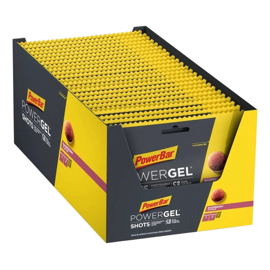 Warum Energie nicht auch mal individuell portionieren. Mit den PowerBar® PowerGel® Shots bekommst du Abwechslung zu klassischen Kohlenhydratriegeln und Gels. Wie auch die PowerGele® enthalten sie C2MAX, eine wissenschaftlich entwickelte Kombination aus Kohlenhydraten mit einem 2:1 Verhältnis von Glukose- und Fruktosequellen. Die Shots im praktischen wiederverschließbaren Beutel lassen sich nicht nur leicht und individuell portionieren, sondern passen auch in jede Trikottasche oder in den Rucksack. Genieße den einzigartigen Geschmack und sei bereit für jede Herausforderung. Praktisch zu portionierende Kohlenhydratgummis mit C2MAX Dual Source Carb Mix 5 Shots liefern ca. dieselbe Menge an Kohlenhydraten wie 1 herkömmliches PowerGel® Einzigartiger Geschmack mit flüssiger Gelfüllung Mit natürlichen Aromen Ohne Konservierungsstoffe (lt. Gesetz) Geschmacksrichtungen Orange und Raspberry: mit Vitamin B6 – Vitamin B6 trägt zu einem normalen Energiestoffwechsel bei Geschmack Cola: mit 75 mg Koffein pro Beutel – Koffein hilft, die Konzentration zu verbessern Alle PowerBar Produkte sind zusätzlich auf der Kölner Liste® aufgeführt, dadurch bieten wir den Athleten noch mehr Sicherheit und Vertrauen. VERZEHREMPFEHLUNG Orange und Raspberry: 2 Beutel/ Tag. Cola: 1 Beutel/ Tag. Cola Geschmack enthält Koffein (125 mg/100 g). Für Kinder und schwangere Frauen nicht empfohlen. Im Rahmen einer abwechslungsreichen und ausgewogenen Ernährung und einer gesunden Lebensweise. Inhalt: 24x60g (Box mit 24 Beuteln)