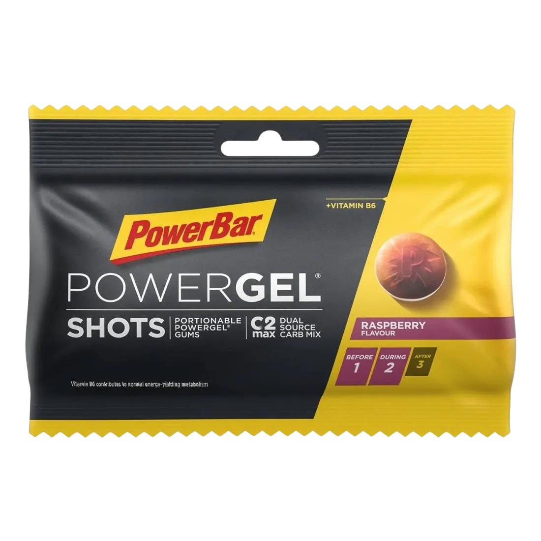 Warum Energie nicht auch mal individuell portionieren. Mit den PowerBar® PowerGel® Shots bekommst du Abwechslung zu klassischen Kohlenhydratriegeln und Gels. Wie auch die PowerGele® enthalten sie C2MAX, eine wissenschaftlich entwickelte Kombination aus Kohlenhydraten mit einem 2:1 Verhältnis von Glukose- und Fruktosequellen. Die Shots im praktischen wiederverschließbaren Beutel lassen sich nicht nur leicht und individuell portionieren, sondern passen auch in jede Trikottasche oder in den Rucksack. Genieße den einzigartigen Geschmack und sei bereit für jede Herausforderung. Praktisch zu portionierende Kohlenhydratgummis mit C2MAX Dual Source Carb Mix 5 Shots liefern ca. dieselbe Menge an Kohlenhydraten wie 1 herkömmliches PowerGel® Einzigartiger Geschmack mit flüssiger Gelfüllung Mit natürlichen Aromen Ohne Konservierungsstoffe (lt. Gesetz) Geschmacksrichtungen Orange und Raspberry: mit Vitamin B6 – Vitamin B6 trägt zu einem normalen Energiestoffwechsel bei Geschmack Cola: mit 75 mg Koffein pro Beutel – Koffein hilft, die Konzentration zu verbessern Alle PowerBar Produkte sind zusätzlich auf der Kölner Liste® aufgeführt, dadurch bieten wir den Athleten noch mehr Sicherheit und Vertrauen. VERZEHREMPFEHLUNG Orange und Raspberry: 2 Beutel/ Tag. Cola: 1 Beutel/ Tag. Cola Geschmack enthält Koffein (125 mg/100 g). Für Kinder und schwangere Frauen nicht empfohlen. Im Rahmen einer abwechslungsreichen und ausgewogenen Ernährung und einer gesunden Lebensweise.
