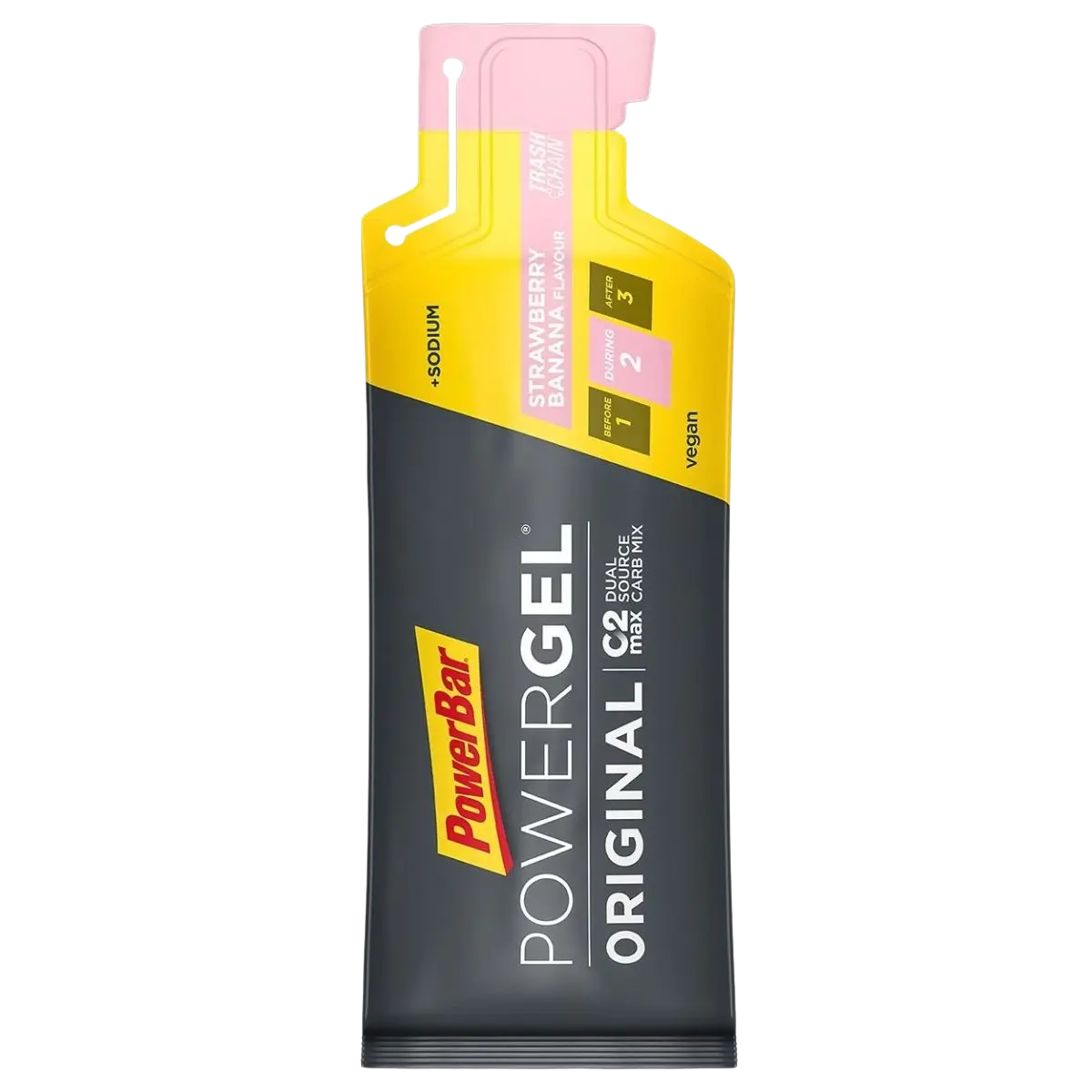Du bist auf der Suche nach bewährten Kohlenhydrat-Gelen, auf die auch Profis unterschiedlicher Sportarten schon seit 1996 vertrauen? Dann sollte deine Wahl auf PowerBar PowerGel® Original fallen. Das Original der PowerGele® versorgt dich mit C2MAX in Kombination mit Natrium. C2MAX ist ein Kohlenhydratmix, welcher ein wissenschaftlich entwickeltes 2:1 Verhältnis von Glukose- und Fruktosequellen enthält. Bewährte Funktionalität mit C2MAX Dual Source Carb Mix und ca. 200 mg Natrium pro Beutel Vegan Innovative Verpackung: leicht zu öffnen und verhindert zusätzlichen Abfall durch „Trash Chain“ Geschmacksrichtungen Black Currant und Green Apple: enthalten zusätzlich 50 mg Koffein proBeutel Geschmacksrichtungen Espresso: enthält zusätzlich 53 mg Koffein pro Beutel Geschmacksrichtung Salty Peanut: auch für Erdnussallergiker geeignet Alle PowerBar Produkte (ausgenommen: Electrolyte Drink Konzentrate) sind auf der Kölner Liste® aufgeführt, dadurch bieten wir den Athleten noch mehr Sicherheit und Vertrauen. Inhalt: 41g (pro Einzel VE!) Verzehrempfehlung: Geschmacksrichtung ohne Koffein: 1-4 Beutel/ Tag. Geschmacksrichtung mit Koffein: 1-3 Beutel/ Tag. Nimm nach Bedarf einen Beutel mit Wasser in regelmäßigen Abständen während der Belastung. Geschmacksrichtung mit Koffein: Erhöhter Koffeingehalt. Für Kinder und schwangere oder stillende Frauen nicht empfohlen. (Green Apple & Black Currant: 122 mg/100g; 50 mg/ Beutel. Espresso: 130 mg/100g; 53 mg/ Beutel.)