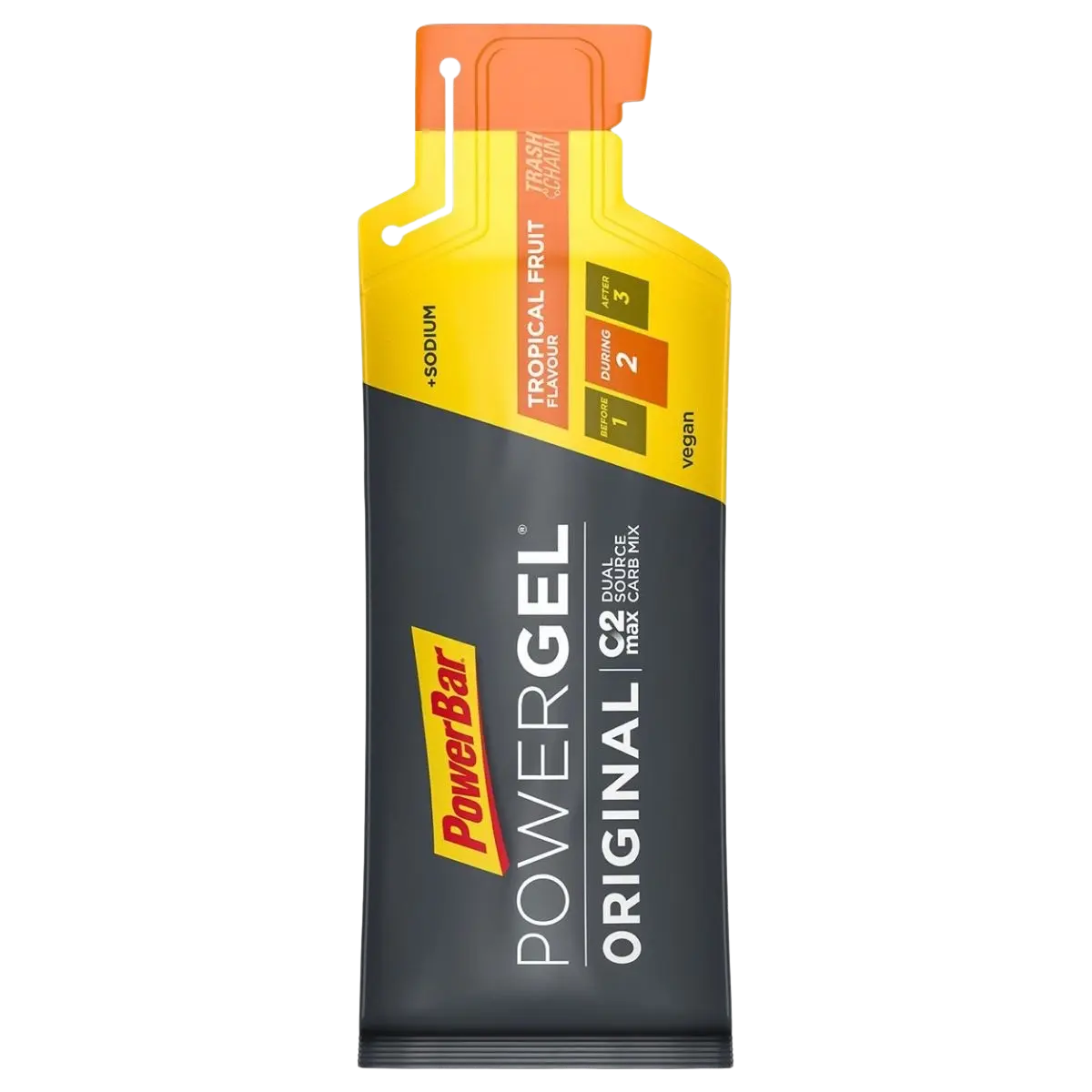 Du bist auf der Suche nach bewährten Kohlenhydrat-Gelen, auf die auch Profis unterschiedlicher Sportarten schon seit 1996 vertrauen? Dann sollte deine Wahl auf PowerBar PowerGel® Original fallen. Das Original der PowerGele® versorgt dich mit C2MAX in Kombination mit Natrium. C2MAX ist ein Kohlenhydratmix, welcher ein wissenschaftlich entwickeltes 2:1 Verhältnis von Glukose- und Fruktosequellen enthält. Bewährte Funktionalität mit C2MAX Dual Source Carb Mix und ca. 200 mg Natrium pro Beutel Vegan Innovative Verpackung: leicht zu öffnen und verhindert zusätzlichen Abfall durch „Trash Chain“ Geschmacksrichtungen Black Currant und Green Apple: enthalten zusätzlich 50 mg Koffein proBeutel Geschmacksrichtungen Espresso: enthält zusätzlich 53 mg Koffein pro Beutel Geschmacksrichtung Salty Peanut: auch für Erdnussallergiker geeignet Alle PowerBar Produkte (ausgenommen: Electrolyte Drink Konzentrate) sind auf der Kölner Liste® aufgeführt, dadurch bieten wir den Athleten noch mehr Sicherheit und Vertrauen. Inhalt: 41g (pro Einzel VE!) Verzehrempfehlung: Geschmacksrichtung ohne Koffein: 1-4 Beutel/ Tag. Geschmacksrichtung mit Koffein: 1-3 Beutel/ Tag. Nimm nach Bedarf einen Beutel mit Wasser in regelmäßigen Abständen während der Belastung. Geschmacksrichtung mit Koffein: Erhöhter Koffeingehalt. Für Kinder und schwangere oder stillende Frauen nicht empfohlen. (Green Apple & Black Currant: 122 mg/100g; 50 mg/ Beutel. Espresso: 130 mg/100g; 53 mg/ Beutel.)