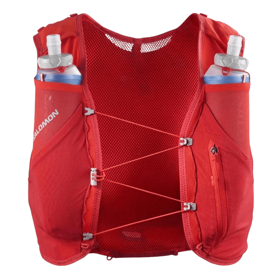 Der Salomon ADV SKIN 5 bietet eine Tragelösung mit präziser Passform für anspruchsvolle Ausdauerläufer. Ausdauerläufe sind anspruchsvoll. Ausdauerläufer auch. Deshalb wurde der Salomon ADV SKIN 5 überarbeitet, um dir noch mehr Freiheit und Komfort zu bieten. Er bietet weiterhin wichtige Eigenschaften wie leichte Flüssigkeitszufuhr, dazu kommen maximaler Komfort und Stabilität sowie ultra-vielseitige Verstaumöglichkeiten. Die 5 Liter-Version ist ideal für kurze Läufe und Rennen. Benefits: Einfache Flüssigkeitszufuhr: Dank der integrierten Soft Flasks, die nicht verrutschen, kannst du jederzeit etwas trinken, während du weiter Gas gibst oder einfach das Laufgefühl genießt. Bewegungsfreiheit Die SensiFit™-Konstruktion bedeutet eng anliegenden, präzisen Sitz. Wir haben bei Komfort und Stabilität noch zugelegt, damit du ein freies Tragegefühl ohne Scheuern genießen und schnell unterwegs sein kannst. Vielseitige Verwendung Diese Trinkweste gehört dir, also richte sie dir ein. Du kannst die Passform anpassen und verschiedene Verstaumöglichkeiten für deine Ausrüstung (einschließlich Stöcke) wählen. Die neue Tasche oben gibt dir noch mehr Möglichkeiten. Essential Infos zur Salomon ADV SKIN 5 mit Flaschen: Pflege: Nicht Bleichen, Nicht Reinigen Lassen, Nicht Bügeln, Nicht Im Trockner Trocknen, Kalte Handwäsche (30°C) Maße (L x B x T in cm) : 38 x 19 x 1 Volumen (Liter) : 5 Gewicht (g) : 249 Gewicht inklusive Zubehör (Gramm) : 323 Signalpfeife TASCHEN & FÄCHER 1 rückseitiges Fach 1 Tasche für Abfall 2 Stretch-Fronttaschen 1 interne Trinkblasenhülle 1 RV-Fronttasche aus Stretch-Material 2 Flask-Fronttaschen 1 Fach hinten am Rücken mit beidseitigem Zugriff 2 Stretchtaschen an der Schulter 1 Stretchtasche oben FLÜSSIGKEITSZUFUHR Trinkblasenfach mit 1,5-Liter-Trinkblase kompatibel Mit 2x 500-ml-Soft Flasks kompatibel