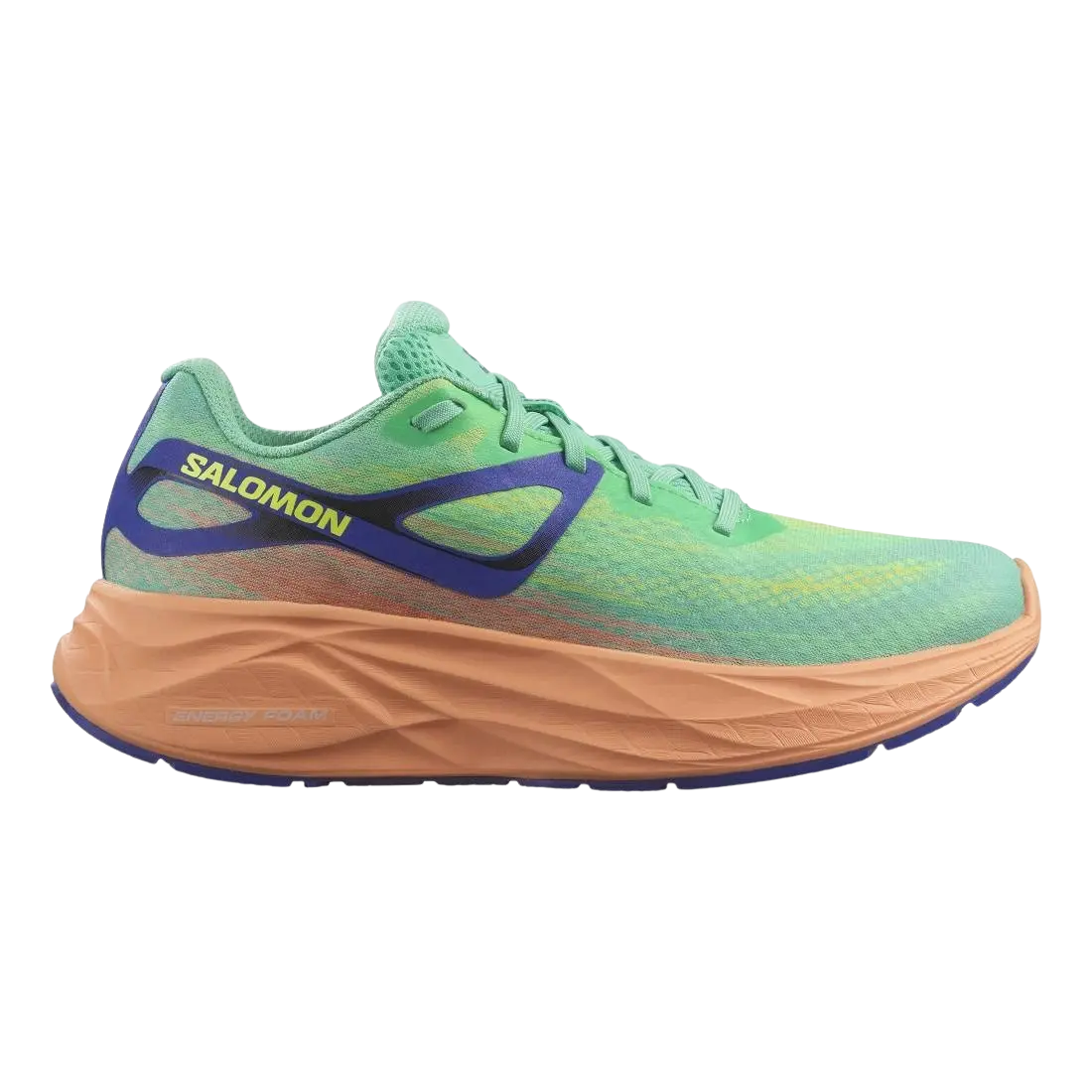 Maximale Dämpfung, unbegrenzte Energie. Der Salomon AERO GLIDE Damen ist ein stark gedämpfter, leichter Laufschuh, der maximale Federung und Energie bietet, während du Strecke machst. Mit seinem leichten, luftigen Obermaterial und angenehm weichen Bereichen an Zunge und Schaftabschluss liefert dir dieser Schuh perfekte Passform und bahnbrechende Performance für ein unvergessliches Lauferlebnis. Weitere Details zum Salomon AERO GLIDE für Damen: Maximale Dämpfung Hohe Zwischensohle mit Energy Foam für maximale Stoßabsorption und superweiche Dämpfung. Geschmeidiges Laufgefühl Reverse Camber, unsere unverkennbare Rocker-Geometrie, sorgt für eine schnelle, geschmeidige Abrollbewegung, damit du weniger Zeit am Boden und mehr Zeit in der Vorwärtsbewegung verbringst. Erstklassige Passform Perfekte Passform dank weich gepolsterter Bereiche an Zunge und Schaftabschluss, die sich am Fuß anschmiegen und sowohl beim Einsteigen als auch beim Laufen für Komfort sorgen. Energy Foam™ Leichter, reaktiver Schaumstoff aus EVA und Olefin (OBC) bringt dauerhafte Dämpfung und eine lebhafte Energierückführung. Reverse Camber Die vom Salomon Skisport inspirierte gewölbte Zwischensohlengeometrie sorgt für ein Laufgefühl, als würdest du über dem Boden dahingleiten 3D Mesh Offenes 3D Mesh-Gewebe sorgt für maximale Atmungsaktivität. Gewicht: 218 g Sprengung: 10 mm (27,4/37,4) Farbe: Cockatoo / Cantaloupe / Surf The Web