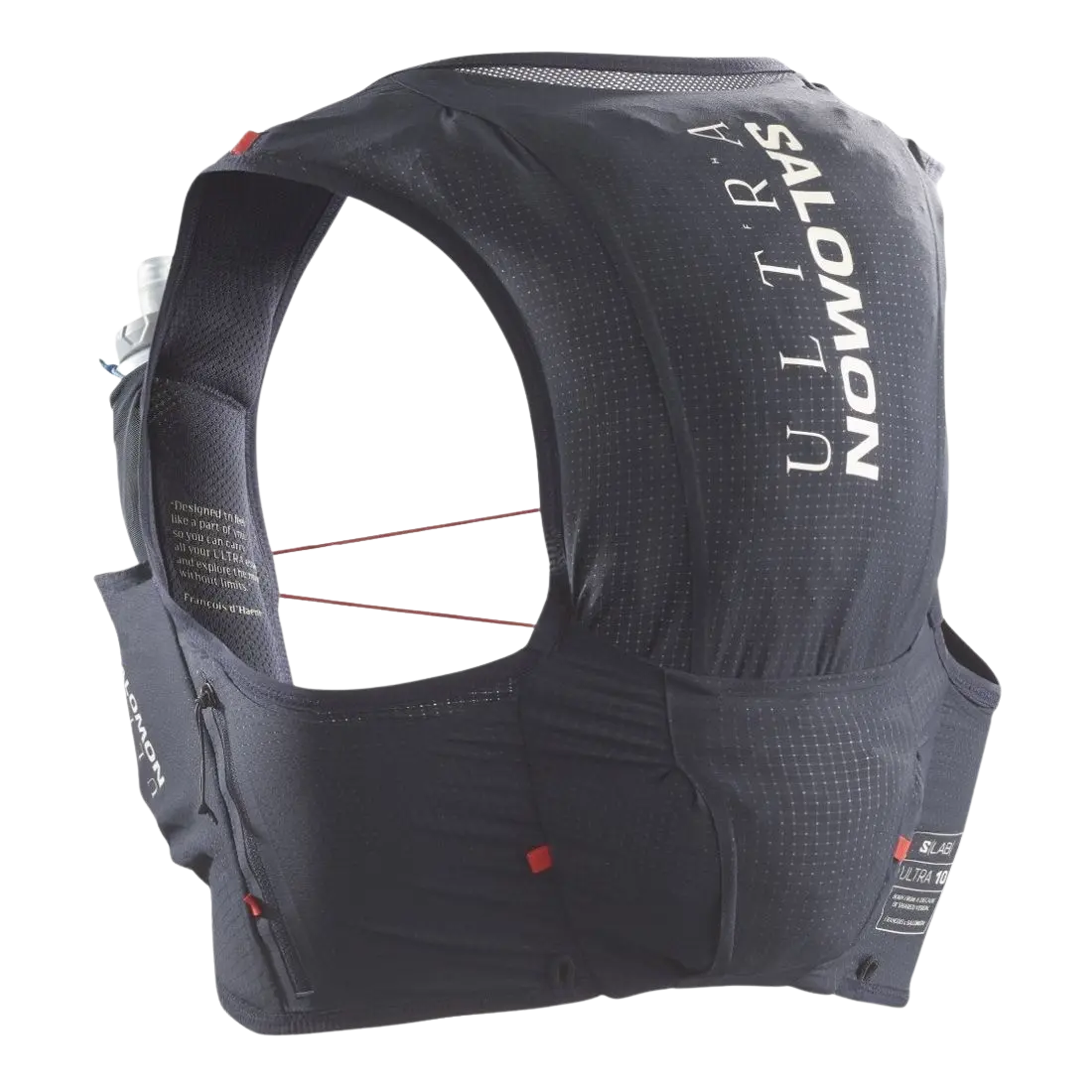 Salomon S/LAB Ultra 10 Laufweste – Minimalistisches Design für maximale Ultra-Performance Die Salomon S/LAB Ultra 10 wurde für anspruchsvolle Ultra-Trail-Läufe entwickelt und bietet dir alles, was du auf langen Distanzen brauchst – in einem ultraleichten, kaum spürbaren Design. Mit einem Volumen von 10 Litern und einem Gewicht von nur 130 g (ohne Zubehör) ist diese Weste die perfekte Kombination aus Stabilität, Zugriff und Komfort. Inspiriert von Ultra-Legende François d’Haene, überzeugt sie mit optimalem Sitz, atmungsaktiven Materialien und durchdachter Taschenorganisation – inklusive zwei 500-ml-Flasks. Dank der SensiFit™-Technologie liegt die Weste eng an, ohne einzuengen, und bietet auch bei langen Läufen sicheren Halt. Ob Pflichtausrüstung, Gels oder Stöcke: Alles ist schnell griffbereit und sicher verstaut. Deine Vorteile im Überblick: SensiFit™-Konstruktion für körpernahen, rutschfreien Sitz 10 Liter Volumen bei nur 130 g Gewicht (210 g inkl. Zubehör) Inklusive 2 x 500-ml-S/LAB Soft Flasks Zahlreiche Taschen: RV-Front- und Seitentaschen, Stretch-Fächer und Rückentasche Schnelles Brustgurtsystem mit Quick Link für einfachen Sitz Kompatibel mit dem Salomon Custom Quiver für deine Stöcke Reflektierende Details und Signalpfeife für Sicherheit unterwegs PFC-freie, atmungsaktive Materialien mit 4-Wege-Stretch Technische Details: Volumen: 10 Liter Gewicht: 130 g (210 g inkl. Zubehör) Maße: 40 × 25 × 1 cm Material: Polyester, Polyamid, Elasthan Lieferumfang: 2 x 500-ml-Flasks Eine High-Performance-Laufweste für alle, die beim Ultra-Trail auf nichts verzichten wollen – außer aufs Gewicht.