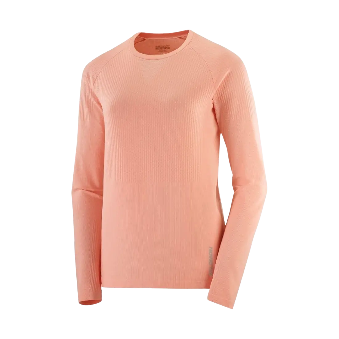 Das SENSE OVER SEASON Langarmshirt für Damen kombiniert ultraleichtes Recyclingmaterial und nahtlose Technologie mit ausgefeilter Feuchtigkeitsregulierung. Für ein schnelles Laufgefühl ohne Ballast. Produktvorteile zum Salomon SENSE LS TEE: Leichtgewichtige Wärme Unser leichtestes und bequemstes Material besteht aus 77 % recyceltem Polyamid und 23 % biobasiertem EVO by FULGAR®-Garn und fühlt sich immer angenehm trocken auf der Haut an. Bewegungsfreiheit Dank weichem Material, Stretchkomfort und minimalen Nähten für einen hautnahen Sitz fühlst du dich pfeilschnell und rundum frei. Feuchtigkeitsregulierung Das Bodymapping-Material mit 3D-Struktur mit Gewebe- und Ripstop-Zonen hilft, die Körpertemperatur zu regulieren. Features: Seamless Technology Eine nahtlose Konstruktion macht das Kleidungsstück leichter, weicher und bequemer. Active Fit Die für Oberteile und Beinbekleidung eingesetzte Active Fit-Passform liegt nah am Körper und folgt deiner Bewegung. Sie sitzt nicht zu eng, aber auch nicht zu locker. Gewicht: 160 g Zusammensetzung: 100% Polyamid Farbe: peach amber