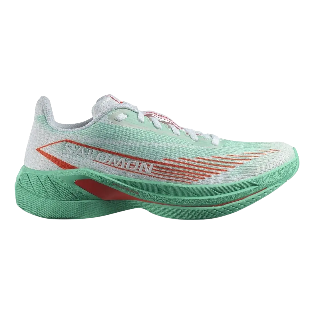 Salomon SPECTUR 2 – Race-Technologie für alle. Der Spectur 2 ist ein für alle zugänglicher superschneller Trainingsschuh mit einer exklusiven Renntag-Attitüde. Die einzigartige Sohlengeometrie in Kombination mit durchgehendem Energy Blade aus Glasfaser wurde speziell für Läufer entwickelt, die eine kürzere Bodenkontaktzeit und geschmeidige Übergänge suchen. Die steife Platte aus Glasfaser-Verbundmaterial, die in die Zwischensohle integriert ist, sorgt für einen knackigen Zehenabstoß und starken Vorwärtsantrieb für ein schnelles Lauferlebnis. Eine breitere Fersenplattform kombiniert mit Energy Blade sorgt für extra Stabilität und das Selbstvertrauen, in deinen schnellen Trainingseinheiten und auf deinen Lieblings-Ziellinien zu brillieren. Genieße ein optimiertes Laufgefühl und einen kraftvollen Abstoß bei jedem Schritt. Die Energy Foam-Zwischensohle kombiniert Leichtigkeit und Dynamik, erlebe ein neues Level an Rebound mit diesem hoch funktionellen Schuh. Durch die äußerst hohe Energierückführung und beispiellose Dämpfung bleiben deine Beine frisch genug für neue persönliche Bestzeiten. Weitere Details des Salomon SPECTUR 2 Laufschuh: 3D Mesh: Offenes 3D Mesh-Gewebe sorgt für maximale Atmungsaktivität. Energy Blade – CF: Energy Blade sorgt für einen effizienten Abstoß. Energy Foam: Leichter, reaktiver Schaumstoff aus EVA und Olefin (OBC) bringt dauerhafte Dämpfung und eine lebhafte Energierückführung. Road Contagrip®-Außensohle für optimalen Halt Weicher Schaftabschluss, Einlegesohle aus gefrästem OrthoLite® Flache Schnürsenkel Recyceltes Material Passform: eher schmal Gewicht: 214g Sprengung: 8mm Farbe: Bay / Cherry Tomato / Electric Green
