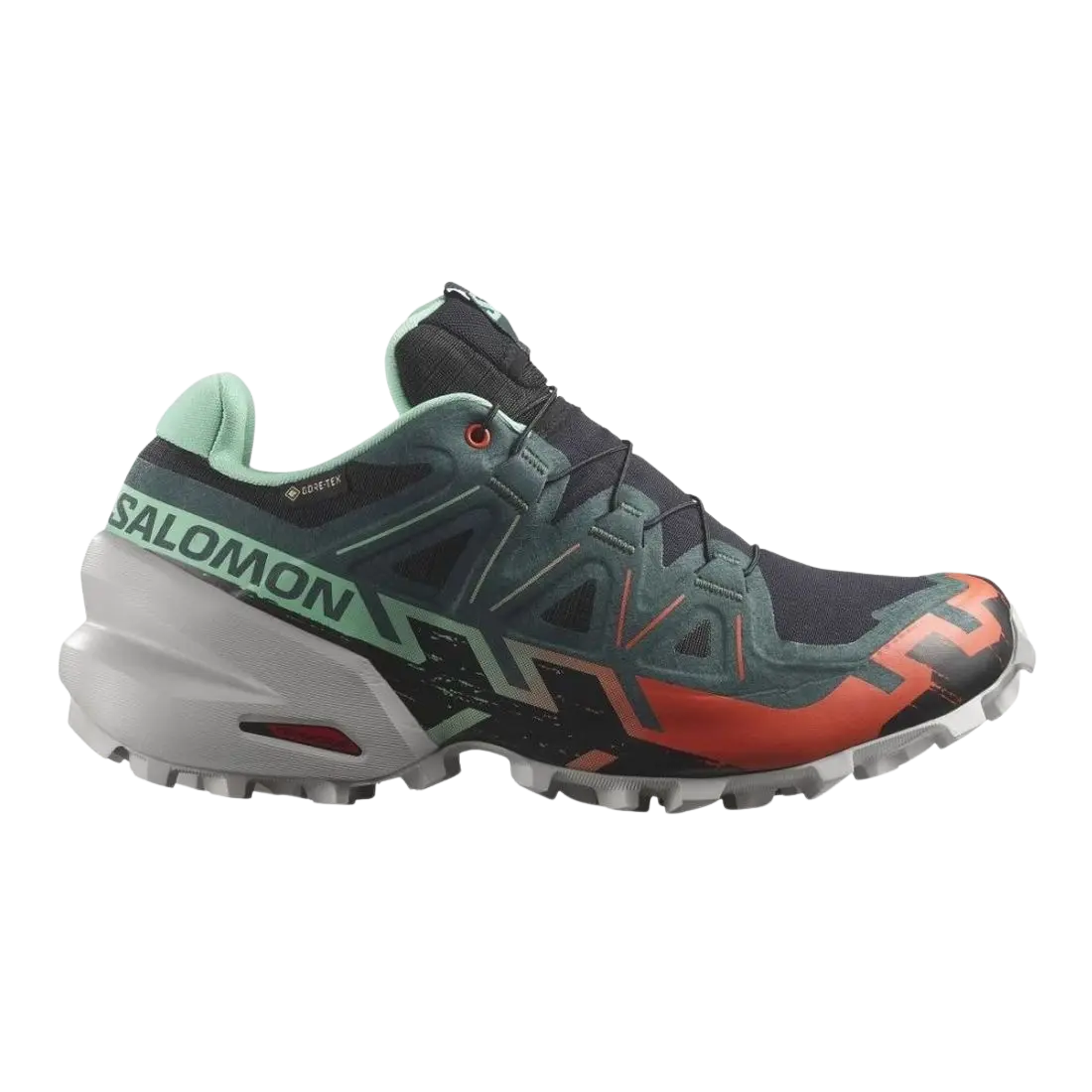 Salomon Speedcross 6 GTX Damen – Die Trail-Legende in neuer Version Der Speedcross 6 GTX bleibt seinen Wurzeln treu und setzt gleichzeitig neue Maßstäbe. Diese überarbeitete Version ist leichter , bietet noch besseren Grip und ermöglicht eine schnellere Schlammabscheidung . Das GORE-TEX-Obermaterial sorgt dafür, dass deine Füße selbst bei nassem Wetter trocken bleiben, während die bewährte SensiFit™-Konstruktion für eine präzise Passform sorgt. Deine Vorteile auf einen Blick: Hervorragender Grip: Die Mud Contagrip®-Sohle mit tiefem Stollendesign sorgt für besten Halt auf weichem, schroffem und unebenem Gelände. Maximaler Komfort: Die EnergyCell™+ Zwischensohle bietet eine optimale Energierückgabe, kombiniert mit zuverlässiger Dämpfung. Schnelle Schlammabscheidung: Das überarbeitete Sohlenprofil verhindert das Anhaften von Schlamm. Wasserdicht & atmungsaktiv: Dank der GORE-TEX Membran bleiben deine Füße trocken, ohne dass Feuchtigkeit von innen staut. Sichere Passform: Die SensiFit™-Technologie umschließt den Fuß für einen optimalen Halt. Schnelles An- und Ausziehen: Das Quicklace™-System ermöglicht eine einfache und präzise Anpassung. Technische Details: Außensohle: Mud Contagrip® Gummi Obermaterial: Synthetik/Textil mit Ripstop-Verstärkung Innensohle: Textil Futter: Textil MCL Schnürsystem: Quicklace™ Wasserdichtigkeit: GORE-TEX Sprengung: 10 mm Noppentiefe: 5 mm Sohlendicke an der Ferse: 32 mm Sohlendicke am Vorfuß: 22 mm Gewicht: 262 g Mit dem Speedcross 6 GTX bekommst du eine leistungsstarke Trail-Legende , die dich auch unter härtesten Bedingungen nicht im Stich lässt.