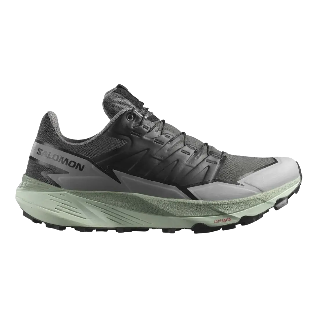 Der Salomon THUNDERCROSS Herren Trailschuh steht für dynamische Dämpfung und kompromisslosen Grip. Der Thundercross ist ein Trailrunningschuh für ein dynamisches, gedämpftes Laufgefühl mit hervorragendem Grip und präzisem Halt. Ausgestattet mit aggressiven 5 mm Stollen für jedes Gelände, egal wie schwierig, technisch oder schmutzig. In den französischen Alpen entwickelt und auf allen Untergründen getestet, von rollenden Hügeln über steinige Pisten bis hin zu Strecken mit gutem Grip. Laufleistung Eine elastische und bequeme Zwischensohle sorgt für einen kraftvollen Abstoß und eine weiche Landung und damit für ein angenehmes Laufgefühl. Grip Aggressive, tiefe 5 mm Stollen bieten hervorragenden Grip und Traktion auf allen technischen Untergründen und Oberflächen. Passform Inspiriert von den besten Trailrunning-Passformen, mit Sensifit™-Konstruktion für präzisen, optimalen Halt am Fuß und zuverlässigen, weichen Komfort. Weitere Details zum Salomon THUNDERCROSS Laufschuh für Herren: All Terrain Contagrip® – Unsere All Terrain Contagrip® Sohle ist für eine Vielzahl unterschiedlicher Untergründe ausgelegt. Sie bietet Haltbarkeit und Trittsicherheit auf nassen, trockenen und harten Oberflächen. Chevron-Stollen – Stollendesign, das sich tief in den Untergrund gräbt und multidirektionalen Grip bietet. Verbessert die Traktion auf weichem Untergrund wie Schlamm oder lockerem Geröll. Energy Foam – Leichter, reaktiver Schaumstoff aus EVA und Olefin (OBC) für dauerhafte Dämpfung und Energierückgabe. ME:sh®-Einsatz für Geröllschutz Quicklace™ Schnürsystem Recyceltes Material Gewicht: 290 g Sprengung: 4 mm