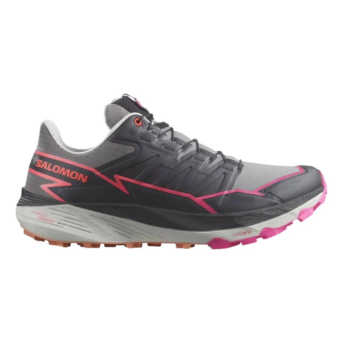 Der Salomon THUNDERCROSS Herren Trailschuh steht für dynamische Dämpfung und kompromisslosen Grip. Der Thundercross ist ein Trailrunningschuh für ein dynamisches, gedämpftes Laufgefühl mit hervorragendem Grip und präzisem Halt. Ausgestattet mit aggressiven 5 mm Stollen für jedes Gelände, egal wie schwierig, technisch oder schmutzig. In den französischen Alpen entwickelt und auf allen Untergründen getestet, von rollenden Hügeln über steinige Pisten bis hin zu Strecken mit gutem Grip. Laufleistung Eine elastische und bequeme Zwischensohle sorgt für einen kraftvollen Abstoß und eine weiche Landung und damit für ein angenehmes Laufgefühl. Grip Aggressive, tiefe 5 mm Stollen bieten hervorragenden Grip und Traktion auf allen technischen Untergründen und Oberflächen. Passform Inspiriert von den besten Trailrunning-Passformen, mit Sensifit™-Konstruktion für präzisen, optimalen Halt am Fuß und zuverlässigen, weichen Komfort. Weitere Details zum Salomon THUNDERCROSS Laufschuh für Herren: All Terrain Contagrip® – Unsere All Terrain Contagrip® Sohle ist für eine Vielzahl unterschiedlicher Untergründe ausgelegt. Sie bietet Haltbarkeit und Trittsicherheit auf nassen, trockenen und harten Oberflächen. Chevron-Stollen – Stollendesign, das sich tief in den Untergrund gräbt und multidirektionalen Grip bietet. Verbessert die Traktion auf weichem Untergrund wie Schlamm oder lockerem Geröll. Energy Foam – Leichter, reaktiver Schaumstoff aus EVA und Olefin (OBC) für dauerhafte Dämpfung und Energierückgabe. ME:sh®-Einsatz für Geröllschutz Quicklace™ Schnürsystem Recyceltes Material Gewicht: 290 g Sprengung: 4 mm