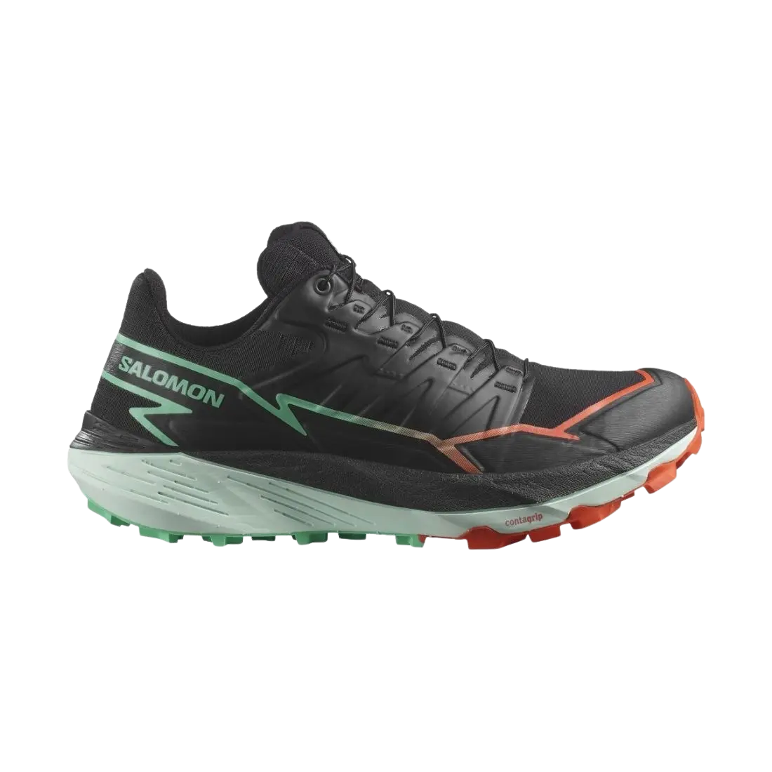 Der Salomon THUNDERCROSS Damen steht für dynamische Dämpfung und kompromisslosen Grip. Der Thundercross ist ein Trailrunningschuh für ein dynamisches, gedämpftes Laufgefühl mit hervorragendem Grip und präzisem Halt. Ausgestattet mit aggressiven 5 mm Stollen für jedes Gelände, egal wie schwierig, technisch oder schmutzig. In den französischen Alpen entwickelt und auf allen Untergründen getestet, von rollenden Hügeln über steinige Pisten bis hin zu Strecken mit gutem Grip. Laufleistung Eine elastische und bequeme Zwischensohle sorgt für einen kraftvollen Abstoß und eine weiche Landung und damit für ein angenehmes Laufgefühl. Grip Aggressive, tiefe 5 mm Stollen bieten hervorragenden Grip und Traktion auf allen technischen Untergründen und Oberflächen. Passform Inspiriert von den besten Trailrunning-Passformen, mit Sensifit™-Konstruktion für präzisen, optimalen Halt am Fuß und zuverlässigen, weichen Komfort. Weitere Details zum Salomon THUNDERCROSS Laufschuh für Damen: All Terrain Contagrip® – Unsere All Terrain Contagrip® Sohle ist für eine Vielzahl unterschiedlicher Untergründe ausgelegt. Sie bietet Haltbarkeit und Trittsicherheit auf nassen, trockenen und harten Oberflächen. Chevron-Stollen – Stollendesign, das sich tief in den Untergrund gräbt und multidirektionalen Grip bietet. Verbessert die Traktion auf weichem Untergrund wie Schlamm oder lockerem Geröll. Energy Foam – Leichter, reaktiver Schaumstoff aus EVA und Olefin (OBC) für dauerhafte Dämpfung und Energierückgabe. ME:sh®-Einsatz für Geröllschutz Quicklace™ Schnürsystem Recyceltes Material Gewicht: 245 g Sprengung: 4 mm Farbe: Black / Cherry Tomato / Electric Green