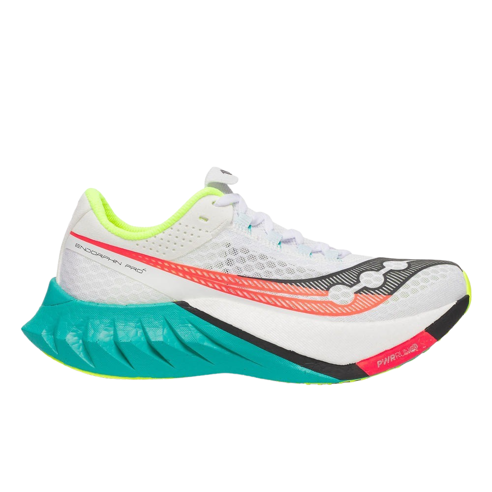 Saucony Endorphin Pro 4 Laufschuhe Damen – Deine Geheimwaffe für Bestzeiten Der Saucony Endorphin Pro 4 wurde speziell für den Wettkampftag und Höchstleistungen entwickelt. Mit einer Kombination aus fortschrittlicher SPEEDROLL-Technologie und innovativer Dämpfung ist er der perfekte Begleiter für Läuferinnen, die ihre Geschwindigkeit maximieren möchten. Die steife Karbonplatte unterstützt eine effiziente Energieübertragung, während die PWRRUN PB- und PWRRUN HG-Dämpfung für ein federndes und schwungvolles Laufgefühl sorgen. Dank des überarbeiteten Designs bietet der Schuh nicht nur herausragende Leistung, sondern auch Komfort. Das seidig-weiche Schutzfutter an der Ferse und die integrierte Zunge sorgen für eine passgenaue, stabile Passform, die speziell auf die Bedürfnisse von Wettkämpferinnen abgestimmt ist. Egal ob beim Geschwindigkeitstraining oder beim entscheidenden Wettkampf, der Endorphin Pro 4 hilft dir, dein Bestes zu geben. Produktdetails & Vorteile Karbonplatte: Steif und durchgehend, sorgt für maximale Energieeffizienz. SPEEDROLL-Technologie: Unterstützt eine dynamische Vorwärtsbewegung für mühelose Geschwindigkeit. Dämpfung: Kombination aus PWRRUN PB und PWRRUN HG für ein federndes, reaktionsfreudiges Laufgefühl. Passform: Rundum-Komfort mit weichem Schutzfutter an der Ferse und einer integrierten Zunge. Einsatzbereich: Geschwindigkeitstraining, Wettkampftag. Unterstützung: Neutral. Sprengung: 8 mm (39.5 mm Ferse / 31.5 mm Vorfuß). Gewicht: 185 g (6.5 oz). Fazit Der Saucony Endorphin Pro 4 ist dein Schlüssel zu persönlichen Bestzeiten. Mit seinem innovativen Design, der reaktionsfreudigen Dämpfung und der dynamischen SPEEDROLL-Technologie hebt dieser Wettkampfschuh deine Performance auf das nächste Level.