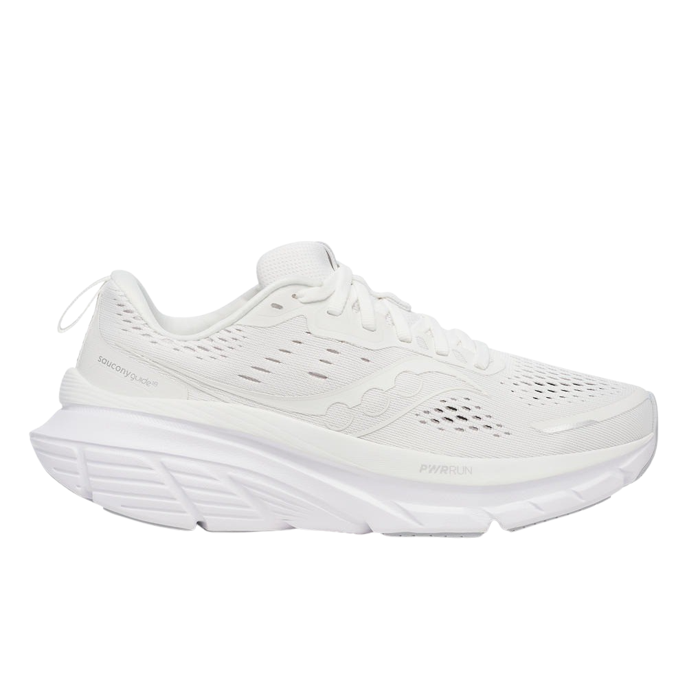 Saucony Guide 18 – Komfort und Schutz bei jedem Schritt Der Saucony Guide 18 ist der perfekte Trainingsschuh für Läuferinnen und Läufer, die Wert auf maximale Dämpfung und optimalen Halt legen. Dieser vielseitige Schuh vereint Komfort und Schutz, um dein tägliches Training angenehmer und effizienter zu gestalten. Der innovative PWRRUN-Schaum bietet eine weiche, reaktive Dämpfung, die Stöße absorbiert und für ein angenehmes Laufgefühl sorgt. Mit der Center Path Technology wird dein Fuß zentriert und unterstützt, was für mehr Stabilität bei jedem Schritt sorgt. Dank der erhöhten Seitenwände fühlt sich dein Fuß sicher eingebettet, während das Rocker-Design einen geschmeidigen Abrollprozess ermöglicht. Was macht den Guide 18 aus? Der innovative PWRRUN-Schaum bietet eine weiche, reaktive Dämpfung, die Stöße absorbiert und für ein angenehmes Laufgefühl sorgt. Die Center Path Technology unterstützt deinen Fuß und hilft dabei, ihn zentriert zu halten – ideal für mehr Stabilität bei jedem Schritt. Dank der erhöhten Seitenwände fühlt sich dein Fuß sicher eingebettet, während das Rocker-Design einen geschmeidigen Abrollprozess ermöglicht. Technische Details: Dämpfung: PWRRUN-Schaum für weichen Komfort und Reaktivität Design: Rocker-Form und hohe Seitenwände für ein unvergleichliches Fußgefühl Einsatzbereich: Tägliches Training, lange Läufe und Recovery-Sessions Gewicht: 245g Sprengung: 6mm Vorteile auf einen Blick: Maximaler Komfort für jede Distanz Verbesserte Stabilität und Zentrierung dank Center Path Technology Perfekt für Läufer*innen, die eine Kombination aus Dämpfung und Unterstützung suchen Mit dem Saucony Guide 18 meisterst du dein tägliches Training mit Leichtigkeit und Stil. Entdecke ein neues Laufgefühl, das deine Performance steigert und gleichzeitig deine Gelenke schont.
