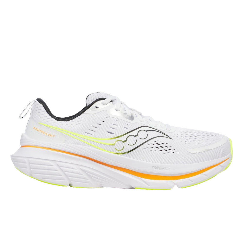 Saucony Guide 18 – Komfort und Schutz in Perfektion Der Saucony Guide 18 ist dein neuer Max-Dämpfungs-Trainingsschuh, der Komfort und Schutz vereint. Mit weichem, reaktivem PWRRUN-Schaum und der innovativen Center Path Technology sorgt der Schuh für ein zentriertes und unterstützendes Laufgefühl. Dank höherer Seitenwände und einem modernen Rocker-Design bietet er dir Stabilität und ein einzigartig angenehmes Tragegefühl. Ob tägliche Trainingseinheit oder lange Läufe – der Guide 18 ist dein verlässlicher Partner. Was macht den Saucony Guide 18 besonders? Maximale Dämpfung: Die breite Basisgeometrie sorgt für ein stabiles Laufgefühl und eine komfortable Landung, während dein Fuß tief in der stabilen Plattform sitzt. Center Path Technology: Zentriert den Fuß von der Landung bis zum Abrollen und garantiert eine ausgewogene und unterstützende Laufbewegung. Reaktiver PWRRUN-Schaum: Weiche und reaktionsfreudige Dämpfung für geschmeidige und komfortable Kilometer. Langlebige XT-900 Außensohle: Bietet dir hervorragenden Grip und Strapazierfähigkeit für viele Laufkilometer. Atmungsaktives Obermaterial: Das speziell entwickelte Mesh sorgt für optimale Luftzirkulation und unterstützt den Fuß dort, wo es nötig ist. Technische Details: Bestens geeignet für: Tägliche Läufe Dämpfung: PWRRUN Einlegesohle: PWRRUN+ Sprengung: 6 mm (Ferse: 35 mm / Vorfuß: 29 mm) Gewicht: Herren 272 g (9.6 oz) Nachhaltigkeit: Vegan und enthält recycelte Materialien Mit dem Saucony Guide 18 genießt du weichen Komfort und zuverlässige Unterstützung – perfekt für jeden Lauf.