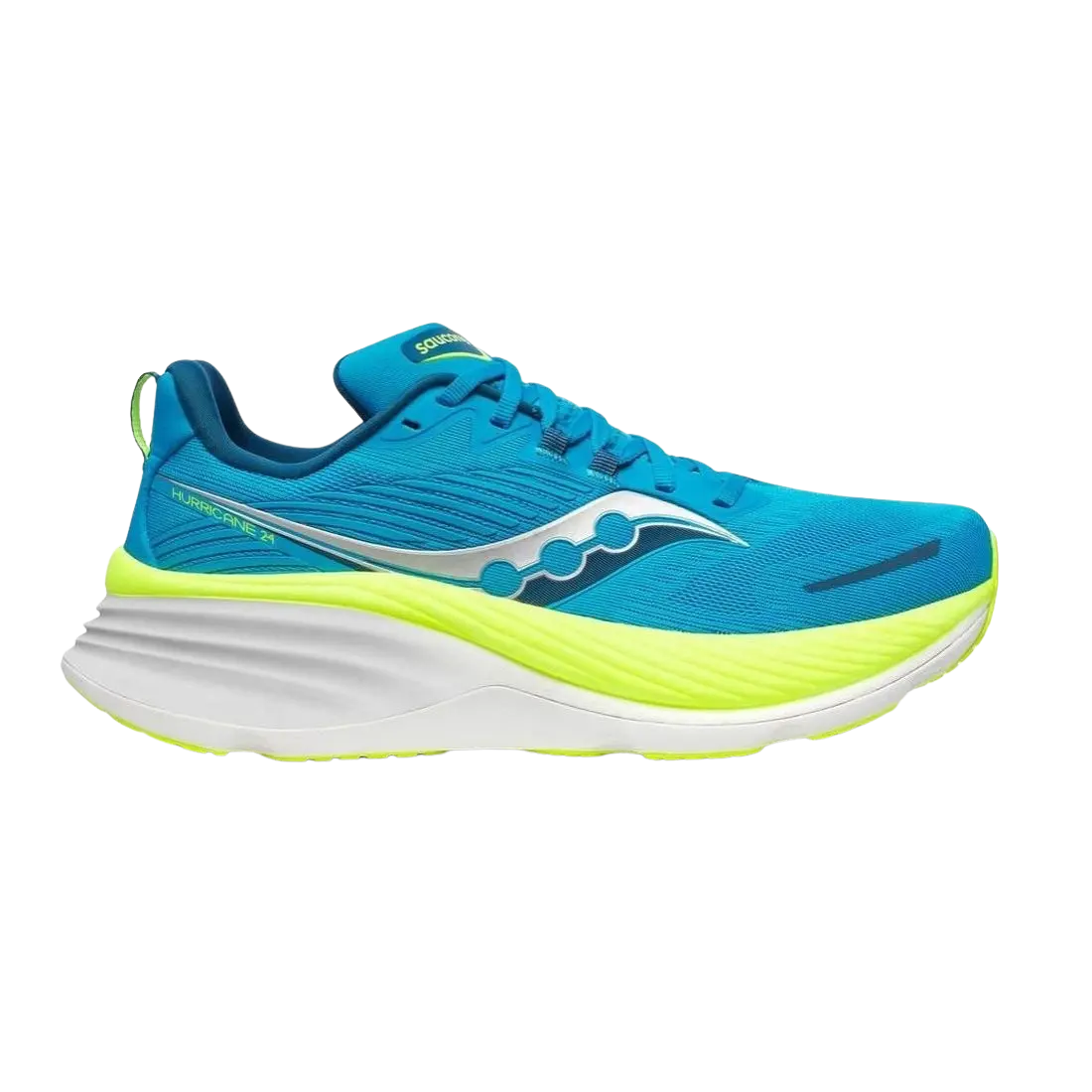 Der neue Saucony HURRICANE 24 Laufschuh für Herren – Unheimlich komfortabel und schützend. Eine neue Ära in Sachen Geometrie bieten maximale Dämpfung und Schutz für jeden Läufer. Der Hurricane 24 ist mit zwei Dämpfungsmaterialien ausgestattet und bietet zum einen dank PWRRUN PB höchste Reaktivität und zum anderen liefert PWRRUN Schaum eine sichere Basis die den Fuß gut umschließt und bei jedem Schritt schützt. Die Center Path Technologie bietet Komfort und Sicherheit mit einer breiteren Plattform, höheren Seitenwänden, einem asymetrischen Profil und der Rocker Geometrie, die einen von Aufprall bis Abstoß sicher leiten. Das anpassbare Schnürsystem sorgt für bequemen sicheren Halt. Das Innere des Schuhs besteht aus butterweichen Materialien, die sich optimal an deinen Fuß anschmiegen. Die Außensohle besteht aus wohlplatziertem xt900 Gummi sodass insbesondere die am meisten beanspruchten Bereiche gute Traktion bieten und langlebig sind. Produktdetails des Saucony HURRICANE 24 Laufschuh für Herren: Perfekt für: Täglicher Lauf/Workout/Alltag Dämpfung: PWRRUN PB Einlegesohle: ORTHOLITE Center Path Technologie für Komfort und Sicherheit Sprengung: 6mm (38/32 mm) Gewicht: Männer 302g Sprengung: 6mm