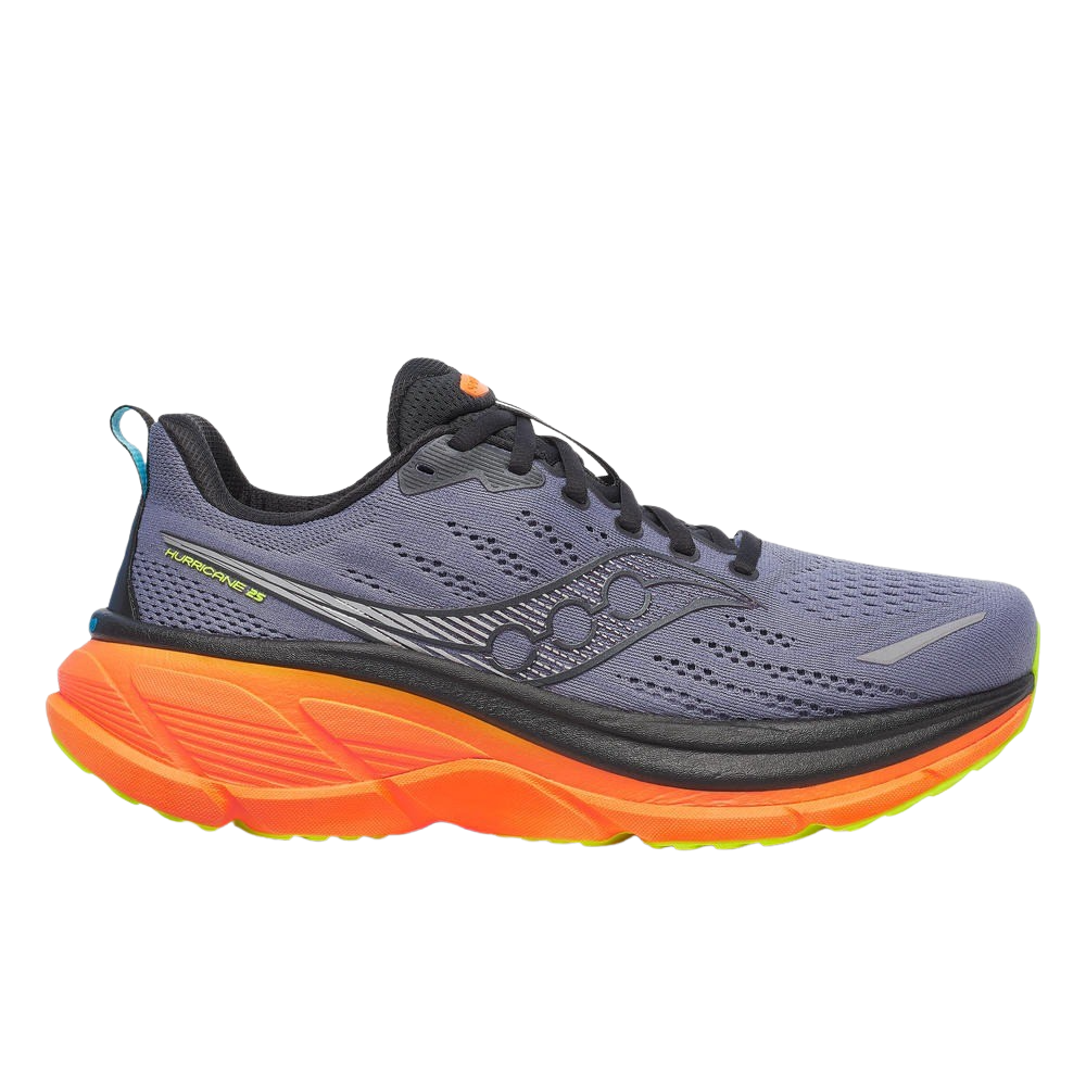 Saucony Hurricane 25 Herren – Ultimative Stabilität mit maximalem Komfort Mit dem Hurricane 25 präsentiert Saucony ein Premium-Stabilitätsmodell, das keine Kompromisse eingeht. Die Kombination aus dem innovativen PWRRUN PB-Schaumstoff und einer optimierten Geometrie bietet eine herausragend weiche Dämpfung bei gleichzeitig hoher medialer Unterstützung. Die Zwischensohle wurde gegenüber dem Vorgänger um 5 mm zur medialen Seite hin verschoben – für ein noch besser ausbalanciertes, zentriertes Laufgefühl. Ein überarbeitetes Mesh-Obermaterial, gepolsterter Schaft und Premium-Zunge sorgen für angenehmen Tragekomfort bei jeder Laufeinheit. Flexkerben im Vorfußbereich verbessern den Übergang in der Abrollbewegung, während die Außensohle aus XT-900 Carbon Rubber für dauerhaften Grip und Schutz sorgt. Technische Details: Gewicht: 285 g Sprengung: 6 mm Zwischensohle: PWRRUN PB + mediale PWRRUN Unterstützung Einlegesohle: SRS Komfortsockliner Außensohle: XT-900 Carbon Rubber Obermaterial: Atmungsaktives Engineered Mesh Besonderheit: Medial verschobene Plattform für bessere Stabilität Ideal für alle Läufer, die maximale Dämpfung mit durchdachter Stabilität kombinieren wollen – ob im täglichen Training oder auf langen Distanzen.