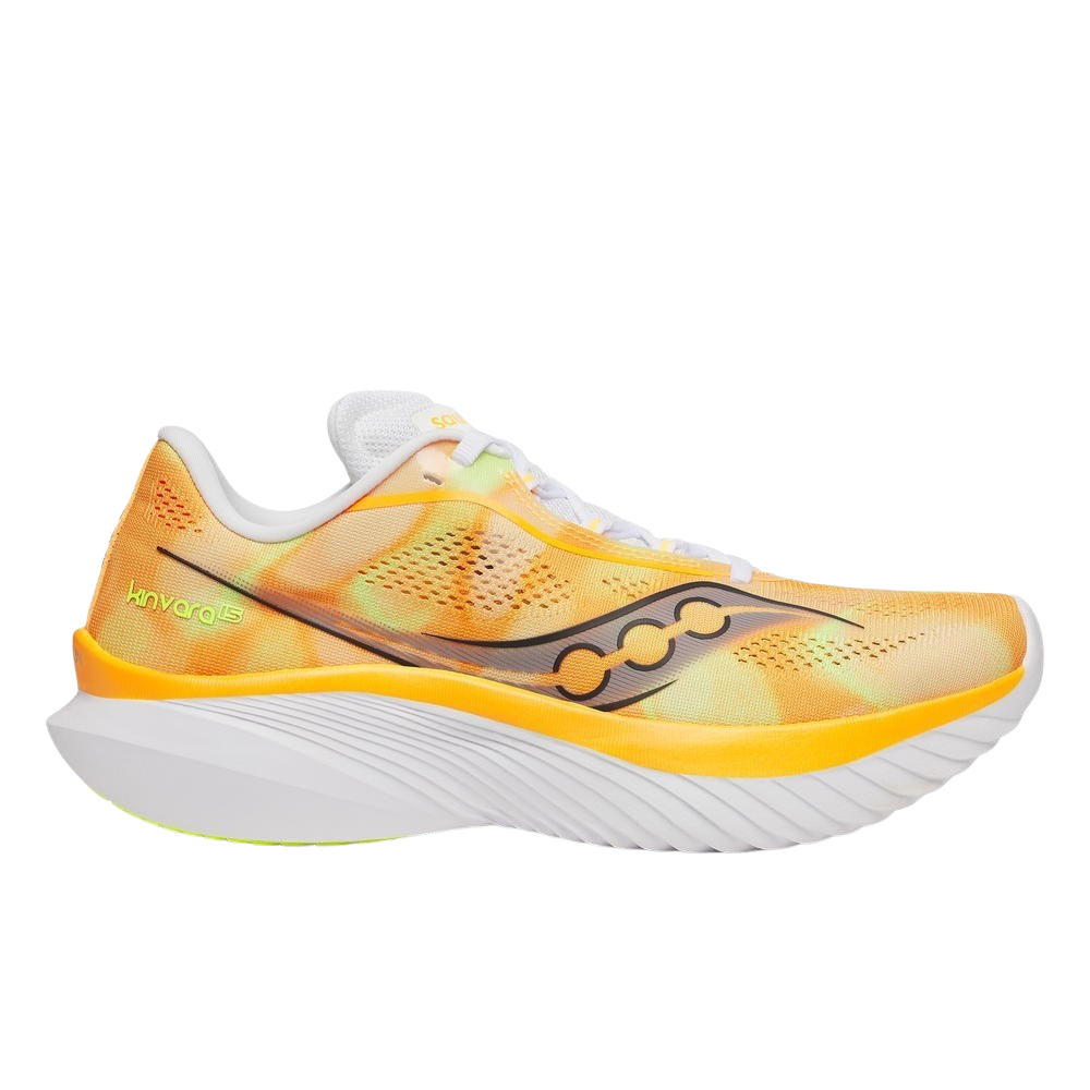 Saucony Kinvara 15 – Leichtigkeit und Flexibilität für schnelle Läufe Der Saucony Kinvara 15 für Damen wurde überarbeitet, um deine schnellen Läufe noch effizienter zu machen. Mit seiner federleichten Bauweise und dem minimalistischen Design ist dieser Schuh perfekt, um das Tempo anzuziehen und Bestzeiten zu erreichen. Die PWRRUN-Plattform bietet eine ausgewogene Kombination aus Schutz und Dämpfung, damit du dich bei jeder Geschwindigkeit sicher fühlst. Die überarbeitete Konstruktion sorgt für ein noch leichteres Obermaterial, das eine ablenkungsfreie Passform garantiert. Dank der PWRRUN+ Einlegesohle erlebst du vom ersten Moment an unvergleichlichen Komfort – ideal für Läuferinnen, die Wert auf ein natürliches und agiles Laufgefühl legen. Warum wirst du ihn lieben? Entwickelt für schnelles Tempo und maximale Flexibilität Federleicht – fast wie schweben Strapazierfähig für tägliches Training und Wettkämpfe PWRRUN-Dämpfung für Schutz und reaktives Laufgefühl PWRRUN+ Einlegesohle für exzellenten Komfort Technische Details: Sprengung: 4 mm (29 mm Ferse / 25 mm Vorfuß) Der Saucony Kinvara 15 ist der ideale Begleiter für Läuferinnen, die einen leichten, flexiblen Schuh suchen, der sowohl für tägliche Trainingsläufe als auch für schnelle Wettkämpfe geeignet ist. Lass dich von seiner Dynamik und Leichtigkeit begeistern!