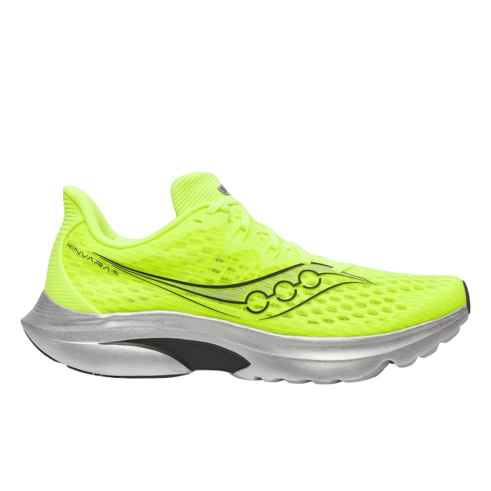 Saucony Kinvara 16 Herren – Minimalistisch, schnell und energiegeladen Der Kinvara 16 bleibt dem Erfolgsrezept der Kinvara-Serie treu und bringt mehr Tempo, Komfort und Effizienz in dein Lauftraining. Die neu abgestimmte PWRRUN-Zwischensohle liefert mehr Energierückgabe, ist dabei noch leichter und langlebiger – perfekt für alle, die natürliche Bewegungsfreiheit und Dynamik lieben. Die überarbeitete Kinvara-Geometrie mit flacheren Seitenwänden und geradem medialem Vorfußbereich sorgt für einen direkteren Kontakt zum Boden und ein natürliches Abrollen. Gleichzeitig schmiegt sich der anatomisch geformte Fersenbereich perfekt an den Fuß – für sicheren Halt bei gleichzeitig hohem Tragekomfort. Durch das clevere Material-Upgrade konnte das Gesamtgewicht reduziert und die Haltbarkeit deutlich verbessert werden. Technische Details: Gewicht: 206 g Sprengung: 4 mm Zwischensohle: Überarbeiteter PWRRUN-Schaum Geometrie: Flache Seitenwände, gerader Vorfußbereich Fersenkappe: Anatomisch geformt für optimalen Sitz Einsatzbereich: Tempoeinheiten, Wettkampf, tägliches Training Für alle, die mit einem leichten, neutralen Laufschuh das Maximum aus jedem Schritt herausholen wollen – der Kinvara 16 ist bereit, mit dir neue Bestzeiten zu schreiben.