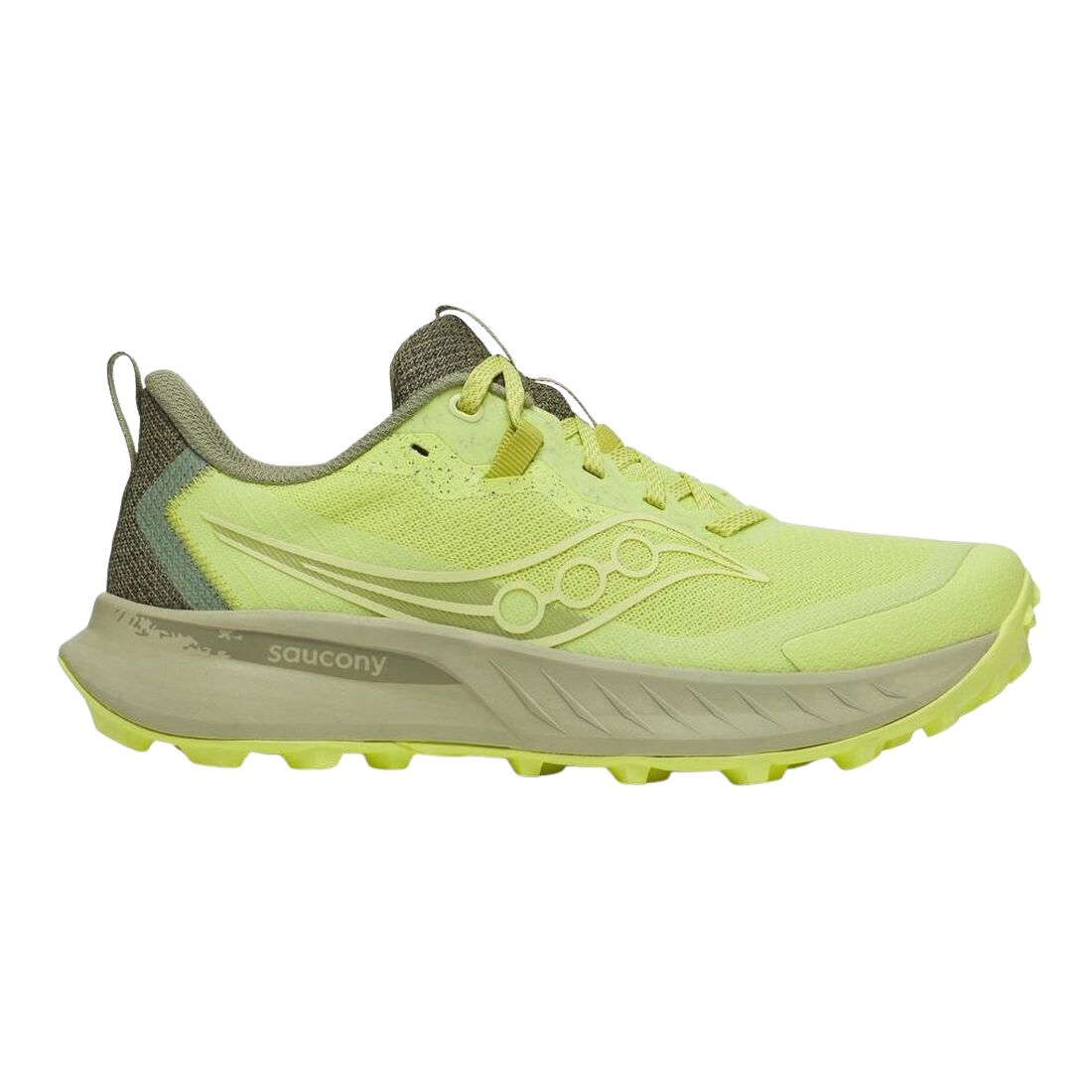 Saucony Peregrine 15 – Dein Trail-Partner für jedes Terrain Der Saucony Peregrine 15 ist der ideale Begleiter für Läuferinnen, die sich auf anspruchsvollen Trails wohlfühlen und nach Bestleistung streben. Mit seiner robusten Konstruktion und innovativen Technologien bietet er dir Komfort, Schutz und außergewöhnlichen Grip – perfekt für jedes Gelände. Die neu entwickelte PWRRUN-Dämpfung sorgt für eine ideale Balance aus Flexibilität und Stoßabsorption und macht den Peregrine 15 zu einem der vielseitigsten Trailrunning-Schuhe. Die PWRTRAC-Außensohle mit tiefen 5-mm-Stollen gewährleistet exzellenten Halt, selbst auf unebenem oder rutschigem Terrain. Das atmungsaktive Mesh-Obermaterial mit verstärkten Zonen schützt deine Füße und sorgt für Langlebigkeit, ohne dabei auf Komfort zu verzichten. Mit der integrierten Rock Guard Technologie meisterst du Trails, egal wie steinig oder herausfordernd sie sind. Merkmale: PWRRUN-Dämpfung für optimalen Komfort und Flexibilität PWRTRAC-Außensohle mit 5-mm-Stollen für außergewöhnlichen Grip Forefoot Rock Guard schützt vor Steinen und Geröll Atmungsaktives, robustes Obermaterial mit Verstärkungen an beanspruchten Stellen Vegan und aus recycelten Materialien gefertigt Sprengung: 4mm Gewicht: 277g Ein Schuh, der Komfort, Grip und Zuverlässigkeit vereint – der Saucony Peregrine 15 macht jedes Abenteuer möglich.