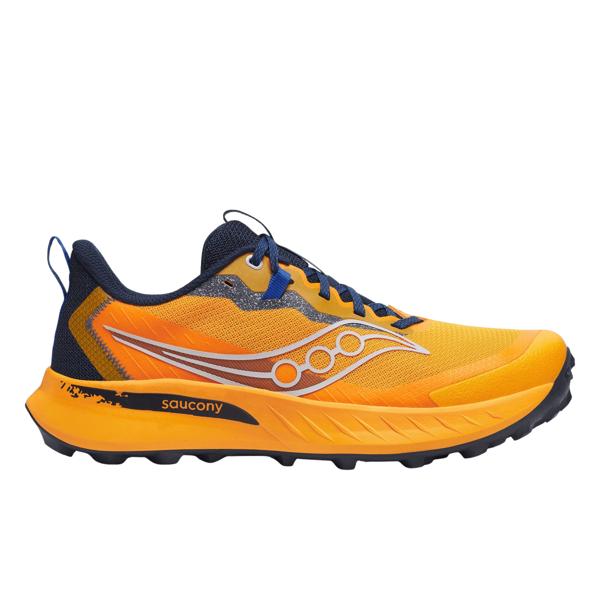 Saucony Peregrine 15 Trailschuhe Herren – Dein ultimativer Trail-Partner Der Saucony Peregrine 15 ist der perfekte Begleiter für technisch anspruchsvolle Trails und gibt dir die Power, jedes Gelände zu erobern. Mit der überarbeiteten PWRTRAC-Gummilaufsohle bietet er außergewöhnliche Langlebigkeit und Grip – egal, ob auf nassen oder trockenen Untergründen. Die neue Version des PWRRUN-Schaumstoffs sorgt für verbesserte Dämpfung, Flexibilität und Stoßabsorption, damit du bei jedem Schritt maximalen Komfort erlebst. Das Obermaterial besteht aus atmungsaktivem, hochfestem Mesh, das an stark beanspruchten Stellen zusätzlichen Schutz bietet. Der integrierte Forefoot Rock Guard schützt deine Füße vor scharfen Steinen und anderen Hindernissen, während der D-Ring für Gamaschenoptionen bereit ist. Entwickelt für Läufer, die selbst das härteste Terrain bezwingen möchten, kombiniert der Peregrine 15 Stabilität, Schutz und Komfort. Produktdetails & Vorteile Optimierter Grip: Durchgängige PWRTRAC-Gummilaufsohle für maximale Robustheit und Bodenhaftung. Verbesserte Dämpfung: PWRRUN-Schaumstoff für mehr Komfort und Flexibilität auf langen Läufen. Robustes Obermaterial: Atmungsaktives, hochfestes Mesh mit verstärktem Schutz in verschleißanfälligen Bereichen. Zusätzlicher Schutz: Forefoot Rock Guard schützt vor Steinen und Hindernissen auf dem Trail. Trail-Kompatibilität: D-Ring für die Befestigung von Gamaschen. Nachhaltigkeit: Vegan und mit recycelten Materialien gefertigt. Sprengung: 4 mm (28 mm Ferse / 24 mm Vorfuß). Gewicht: 277 g (9.7 oz). Einsatzbereich: Technisches Trailrunning. Fazit Mit dem Saucony Peregrine 15 bist du bestens gerüstet, um anspruchsvolle Trails zu meistern. Langlebig, schützend und komfortabel – dieser Schuh lässt dich auch in schwierigem Gelände souverän auftreten.