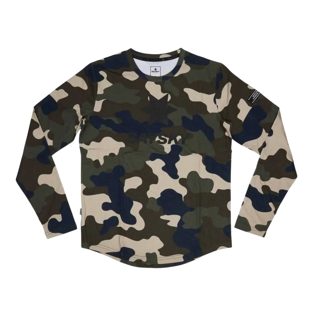 Das SAYSKY Camo Blaze Longsleeve ist ein langärmeliges Unisex-Laufshirt mit einem Tarnmuster. Es hat ein Waterprint SAYSKY Logo auf der Vorderseite, ein gewebtes SAYSKY Label auf der Rückseite und ein WORLDWIDE RUNNING TRIBE Label auf dem Arm. Das Shirt bietet dir aufgrund seiner Stoffzusammensetzung extra viel Wärme. Die Passform ist regulär und so konzipiert, dass sie dir beim Laufen Komfort und ein hohes Maß an Leistung bietet. DETAILS zum SAYSKY Camo Blaze Longsleeve für Herren: Unisex Regular Fit. 88% Recycled Polyester / 12% Spandex. Etwas wärmeres Material. SAYSKYDRY Performance-Material: weiches, leichtes und technisch feuchtigkeitsableitendes Material, um dich beim Laufen trocken und komfortabel zu halten. Das dehnbare Material passt sich allen Körpertypen an. Auf der Innenseite gebürstet für ein superweiches und angenehmes Tragegefühl. Farbe: WOODLAND CAMO