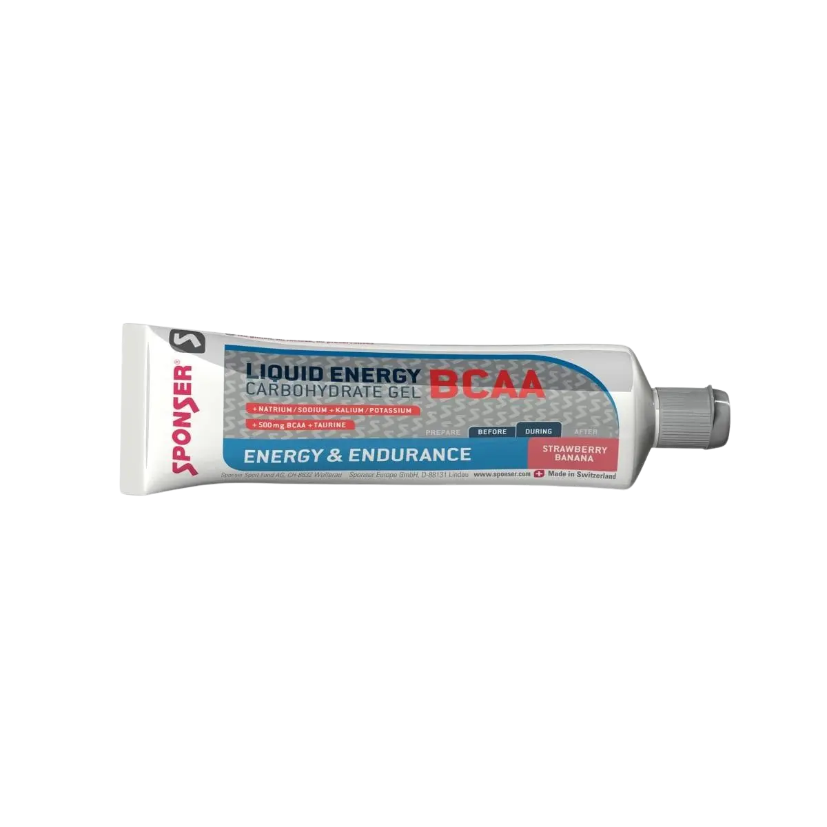 Sponser Liquid Energy BCAA ist ein hochkonzentriertes Energie-Gel und enthält nebst Glucose und Fructose, auch BCAA und Taurin und ist zudem angereichert mit Natrium und Kalium. Die verzweigtkettigen Aminosäuren (BCAA) Leucin, Valin und Isoleucin dienen den Muskeln hauptsächlich als Brennstoff. Eine gezielte Ergänzung kann die körpereigenen BCAA schonen und die Muskelsynthese und damit die Regeneration nach dem Sport unterstützen. Neuere Studienresultate deuten zudem an, dass BCAA die zentrale Ermüdung zu reduzieren vermögen, was bei Langzeit-Ausdauerbelastungen von Vorteil sein kann. Taurin wird wegen seiner regenerativen Eigenschaften geschätzt und eingesetzt. Inhalt: 1 Tube à 70g Vorteile * High-Tech Energie-Gel speziell für Ausdauerevents und zur Regeneration * 500 mg BCAA * 400 mg Taurin * Praktische Dosierung und Handhabung * Ohne Konservierungsmittel * Praktisches Handling – Kein Verkleben und Verschmieren Anwendung Ideal während Langzeit-Ausdauerbelastungen und zur Regeneration. 1 Tube pro 2 Stunden. Mit 200 ml Wasser nachspülen.