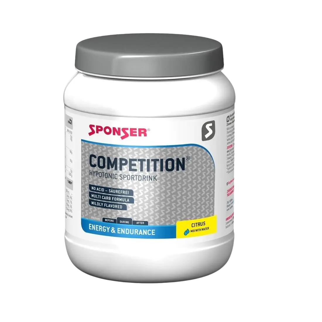 Sponser COMPETITION, die neue Generation der Sportlergetränke. Ersetzt die Flüssigkeit bei maximaler Energiedichte und dezenter Aromatik. Trehalose, Isomaltulose sowie spezielle Stärkehydrolisate ermöglichen eine tiefe Osmolarität und damit eine höhere Energiedichte als herkömmliche Sportdrinks. Dank dem optimalen Verhältnis von Glucose und Fructose in der Proportion von 2:1 wird die Energieaufnahme über untershiedliche Transportsysteme zusätzlich optimiert. Dadurch werden Glykogenreserven geschont und der Sportler profitiert von einem erheblichen Energievorteil. Sponser Competition ist ein ideales Sportlergetränk für ambitionierte Athleten, welche hohe Ansprüche an ein Sportgetränk stellen. Geschmacksrichtung: CITRUS Vorteile * Praktisch pH-neutrales Wettkampfgetränk, da ohne Säuerungsmittel und nur mit dezenter Aromatik * Hochmolekulare Stärkehydrolisate mit sehr tiefer Osmolarität * Isomaltulose (Glucose + Fructose) und Trehalose (Glucose + Glucose) sorgen für einen deutlich langsameren Blutzucker- und Insulinanstieg gegenüber anderen Zuckerarten * Bis 100 g Pulver pro 1000 ml dosierbar und noch immer hypoton (240 mOsm). Anwendung Sportgetränk für höchste Energiebedürfnisse und Verträglichkeitsansprüche. Auch zum Carboloading geeignet. Bis 100 g/Liter ist das Getränk hypoton (240 mOsm), bei sehr hohem Energiebedarf kann die Konzentration bis max. 120 g/Liter (isoton) erhöht werden.