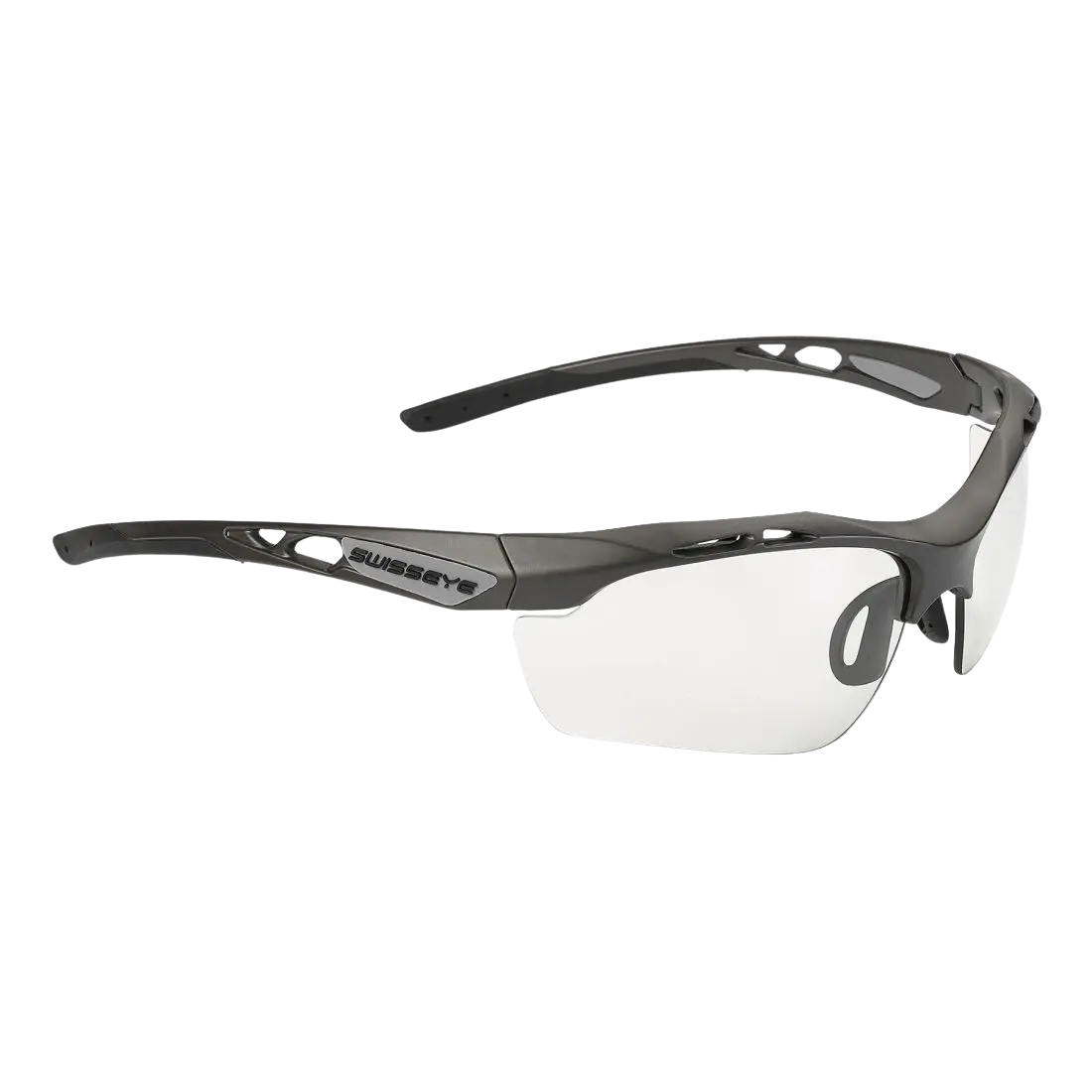 Mit der Swiss Eye NUCLEO Sportsonnenbrille bist du bestens gewappnet für jegliche Outdoor Abenteuer. Um optimale Passform und Halt zu bieten, ist der Nasensteg verstellbar und die Bügelenden gummiert. Falls die Brille doch mal runterfällt oder du stürzt, sorgt das splitterfreie Material der Fassung und der Polycarbonatscheiben dafür, dass du nicht zusätzlich durch Splitter verletzt wirst. Die Scheibe ist photochrom das heißt sie ist selbsttönend und bietet dir bei allen Lichtverhältnissen einen zuverlässigen Schutzt vor UV-Strahlung, während die Sehleistung nicht beeinträchtigt wird. Phototrope Gläser haben eine Grundtönung von ca. 8 % und tönen sich je nach UV-Intensität und Temperatur auf bis zu 80 % ein. Je kälter, desto schneller und dunkler, je wärmer desto langsamer und heller. Diese Brille ist auch zur direkten Verglasung geeignet für Sportler mit Sehstärke. Produktdetails der Swiss Eye NUCLEO Sportsonnenbrille: verstellbarer Nasenbereich/gummierte Bügelenden splitterfreies Fassungsmaterial TR90 und Polycarbonatscheiben innovatives Ventilationssystem der Fassung teilweise Mikrofaserbeutel, Etui und Schweißband auch zur direkten Verglasung geeignet diese Scheiben passen auch in die Nucleo 6C Rahmen-Farbe: dark grey matt / black Gläser: photochromic clear-smoke Maße der Brille: Brillenbreite: 132mm Höhe der Gläser: 44mm Bügellänge: 135mm