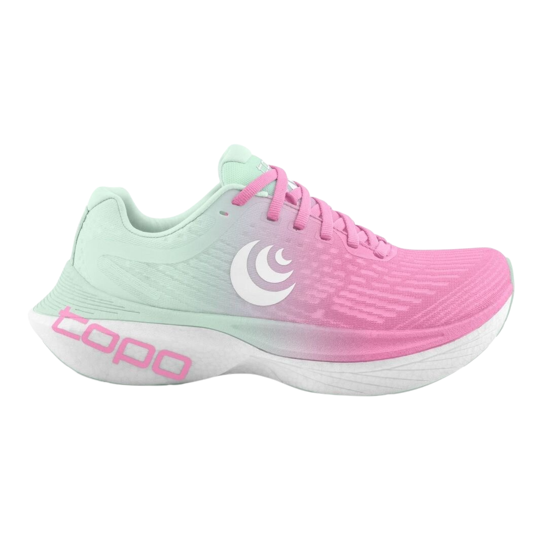 Der Topo SPECTER 2 ist die ideale Wahl für Läufer, die auf der Suche nach einem leichten, dynamischen und komfortablen Laufschuh sind. Dieser Schuh kombiniert modernste Technologien, um Deine Laufleistung zu maximieren und gleichzeitig hohen Komfort zu bieten. Die vollflächige, reaktive Pebax® (TPE-A) Zwischensohlentechnologie sorgt für eine herausragende Energierückgabe, während das ultraleichte Sohlendesign mit einer extrem flachen Non-Slip Roadsohle und Verstärkungen in den Lastbereichen für optimale Stabilität sorgt. Das zweiteilige Ultralight (UL) Funktionsmesh des Obermaterials bietet eine hohe Atmungsaktivität und hält Deine Füße auch bei intensiven Läufen kühl und trocken. Die mittelfußbalancierte Konstruktion des Specter 2 sorgt für ein besonders leichtes Laufgefühl, während die komfortable Passform mit einer natürlichen Zehenbox und einem speziell geformten Leisten für perfekten Sitz und maximale Bewegungsfreiheit sorgt. Die super Cushion Dämpfung und die stützende Komfort-Fersenkappe bieten zusätzlichen Komfort und Halt. Das antimikrobielle, orthopädisch geformte Ortholite-Fußbett und die Zehen- und Fersen-Rocker für ein dynamisches, schnelles Abrollen runden das Gesamtpaket ab und machen den Topo Specter 2 zu einem unverzichtbaren Begleiter auf allen Straßenstrecken und bei Tempotrainings. Highlights des Topo SPECTER 2 Laufschuh für Damen: Modernste Zwischensohlentechnologie aus vollflächigem, reaktivem Pebax® (TPE-A) +2 mm mehr Dämpfung Ultralight-Sohlendesign mit extrem flacher Non-Slip Roadsohle und Verstärkungen in Lastbereichen Am Mittelfuß ausbalanciert für ein besonders leichtes Laufgefühl Komfortable Passform dank natürlicher Zehenbox und Leisten-Shaping Obermaterial aus zweiteiligem Ultralight (UL) Funktionsmesh mit hoher Atmungsaktivität Super Cushion Dämpfung Stützende Komfort-Fersenkappe Antimikrobielles und orthopädisch geformtes Ortholite-Fußbett Zehen- und Fersen-Rocker für ein dynamisches, schnelles Abrollen Komfortzunge mit Schnürsenkelführung Vergleichbare Schuhe: Saucony Endorphin Speed 3, Hoka Mach X Gewicht: 196g (US7 / Women) Sprengung: 5mm Farbe: pink