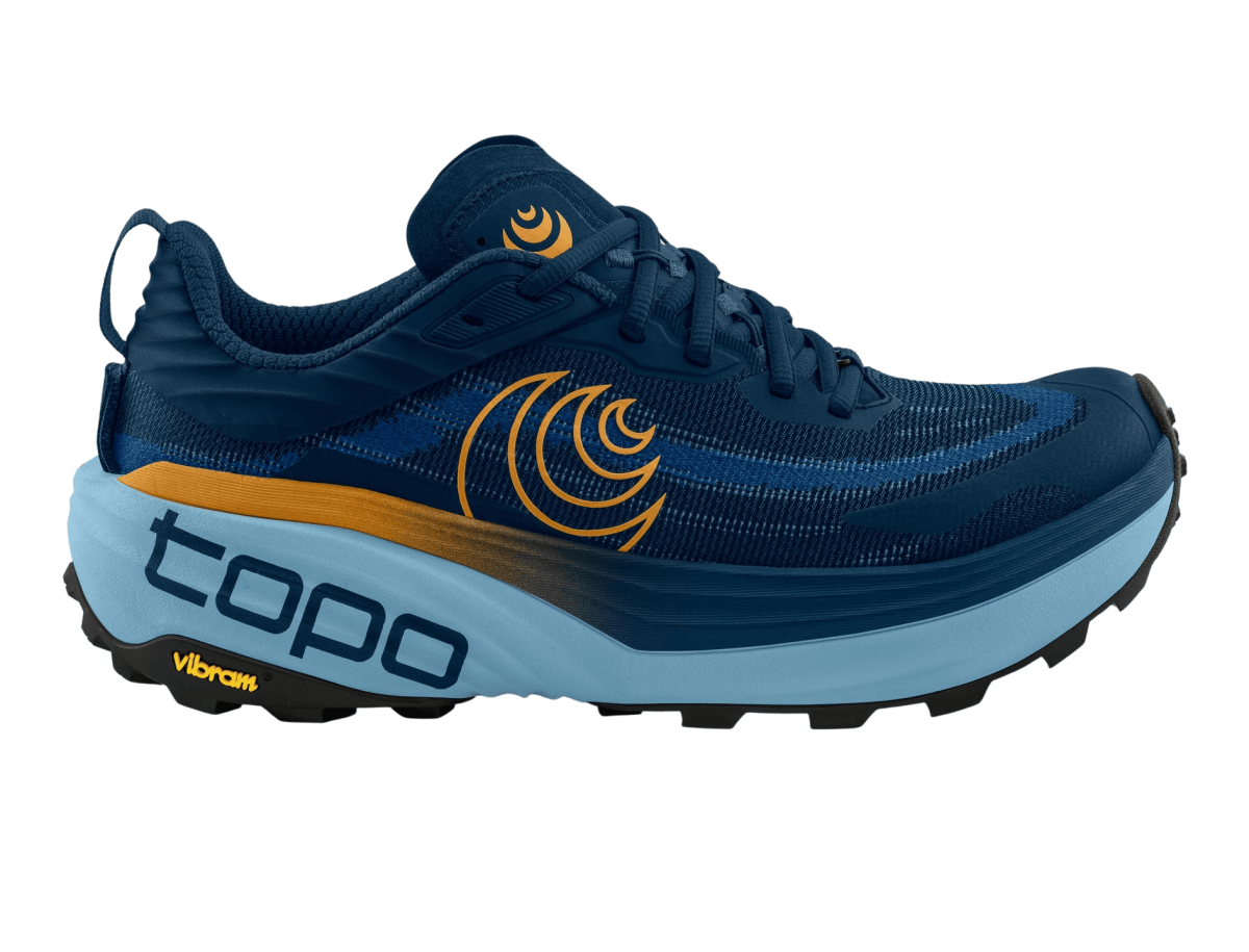 Topo Athletic VISTA – Technische Trails. Maximaler Komfort. Kein Kompromiss. Der Topo Athletic VISTA ist ein maximal gedämpfter Trailschuh für Läufer, die sich auf technischem Terrain zuhause fühlen und dabei nicht auf Schutz oder Dynamik verzichten wollen. Die kraftvolle Plattform mit 38 mm in der Ferse und 33 mm im Vorfuß liefert in Kombination mit der ZipFoam™-Zwischensohle ein geschmeidiges, gleichzeitig reaktives Laufgefühl – ideal für lange Strecken in unwegsamem Gelände. Das Rocker-Design unterstützt einen natürlichen, flüssigen Bewegungsablauf, während die Vibram® Megagrip-Außensohle mit überarbeitetem 4-mm-Stollenprofil auch bei Nässe und Geröll maximalen Grip garantiert. Die FKT-Innensohle punktet mit direktem Step-in-Gefühl und effizientem Feuchtigkeitsmanagement. Das eng gewebte Mesh-Obermaterial ist robust und atmungsaktiv zugleich, und mit dem neuen Gaiter-System am Fersenbereich bist du auch für Extrembedingungen bestens vorbereitet. Deine Vorteile im Überblick: ZipFoam™-Zwischensohle für ausgewogene Dämpfung und Reaktion Rocker-Geometrie für effizientes Abrollen Vibram® Megagrip-Außensohle mit neuem Profil für starken Halt FKT-Innensohle mit schneller Wasserableitung Eng gewebtes Mesh für hohen Schutz und Atmungsaktivität Universelle Gaiter-Aufnahme am Fersenbereich mit Klettverschluss Technische Details: Sprengung: 5 mm Stack: 38 mm (Ferse) / 33 mm (Vorfuß) Zwischensohle: ZipFoam™ (27,5 mm / 22,5 mm) Außensohle: Vibram® Megagrip (5,5 mm) Fußbett: 5 mm Gewicht: 310 g Ein performanter Trailrunningschuh für Läufer, die technische Herausforderungen mit Komfort und Stabilität meistern wollen.