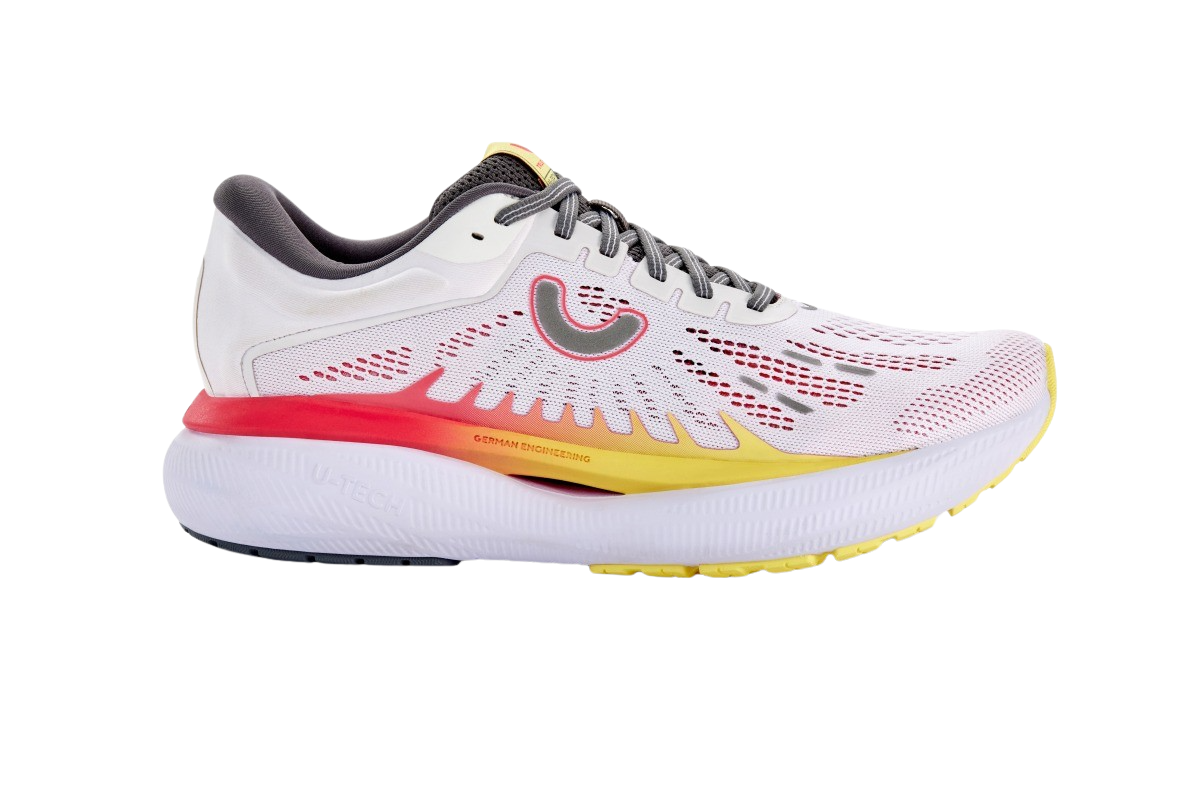 Der True Motion U-TECH AION – Das Spa für Deine Füße Der True Motion U-TECH AION ist das ultimative Modell für Komfort und Dämpfung. Als Weiterentwicklung des beliebten U-TECH Nevos bietet der AION ein noch weicheres Laufgefühl und eine erstklassige Dämpfung, die deinen Körper schont und für ein sanftes Abrollen sorgt. Dank des innovativen U-TECH Foams erlebst du eine beeindruckende Energierückgabe bei jedem Schritt, die dich vorwärts treibt. Das weiche Obermaterial passt sich optimal an deinen Fuß an und bietet Halt genau dort, wo du ihn brauchst, ohne dabei einzuengen. Die neue 3D-MotionBridge verbindet Ferse und Vorfuß auf harmonische Weise und sorgt für eine natürliche Stabilität und Bewegungsführung. Mit langlebiger Außensohle und optimierter Passform ist der AION dein zuverlässiger Begleiter, ob auf der Straße oder im Gelände. Erlebe den Trampolin-Effekt bei jedem Abdruck – ein Laufgefühl, das seinesgleichen sucht. Produktdetails: Vollflächiger U-TECH Foam für maximale Dämpfung und weiches Abrollen 3D-MotionBridge für harmonische Kopplung zwischen Ferse und Vorfuß 30 % mehr U-TECH Foam für sanfteres Abrollen High-Performance-Gummi für Traktion und Haltbarkeit Optimierte Passform und neue reaktive Einlegesohle 360° Reflektivität und hohe Atmungsaktivität Sprengung: 10 mm Gewicht: 290 g