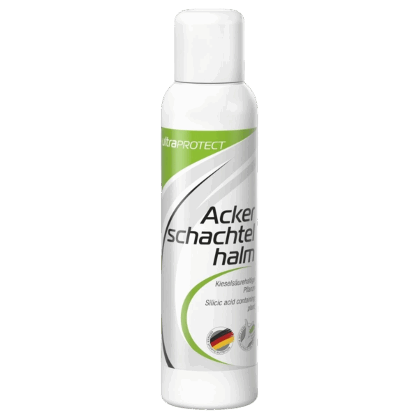 UltraProtect ACKERSCHACHTELHALM (flüssig) enthält natürliche Kieselsäure und ist somit der Chefnährstoff für die Ernährung von Sportlern. Tipp: ultraPROTECT Ackerschachtelhalm 2 Wochen vor sowie während intensiver Trainingsperioden einnehmen. Vorteil: Gute Anpassung der Sportler an die höhere Belastung. Besonderheiten: laktosefrei, glutenfrei, vegan Anwendung: Täglich 1 kleinen TL (3,3 ml) in Wasser oder Saft einrühren und trinken. Vor Gebrauch schütteln Inhalt: 100 ml Zutaten: Ackerschachtelhalmkonzentrat (Wasser, Ackerschachtelhalm*), Vitamin C, Konservierungsstoff: Kaliumsorbat.* Herkunft: Polen