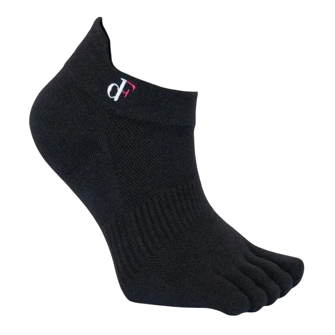 Die Vibram dF Performance Zehensocken werden aus den modernsten Hightech Fasern gefertigt. Sie sind atmungsaktiv, schnelltrocknend und bieten eine optimale Feuchtigkeitsregulierung für den Fuß. Durch die Beigabe der Nylon Fasern liegen die Zehensocken perfekt am Fuß an. Die Bewegungsfreiheit für jede einzelne Zehe erhöht den Tragekomfort. Empfehlenswert ist das Tragen von Zehensocken auch in Sport, Outdoor und Freizeitschuhen. Details zu den Vibram Zehensocken dF No-Show black: Mischung: Coolmax 28% Nylon 67% Lycra 5% Waschbar bei 30° C Farbe: Black Größeneinteilung: S (37-40) M (41-44) L (45-47)