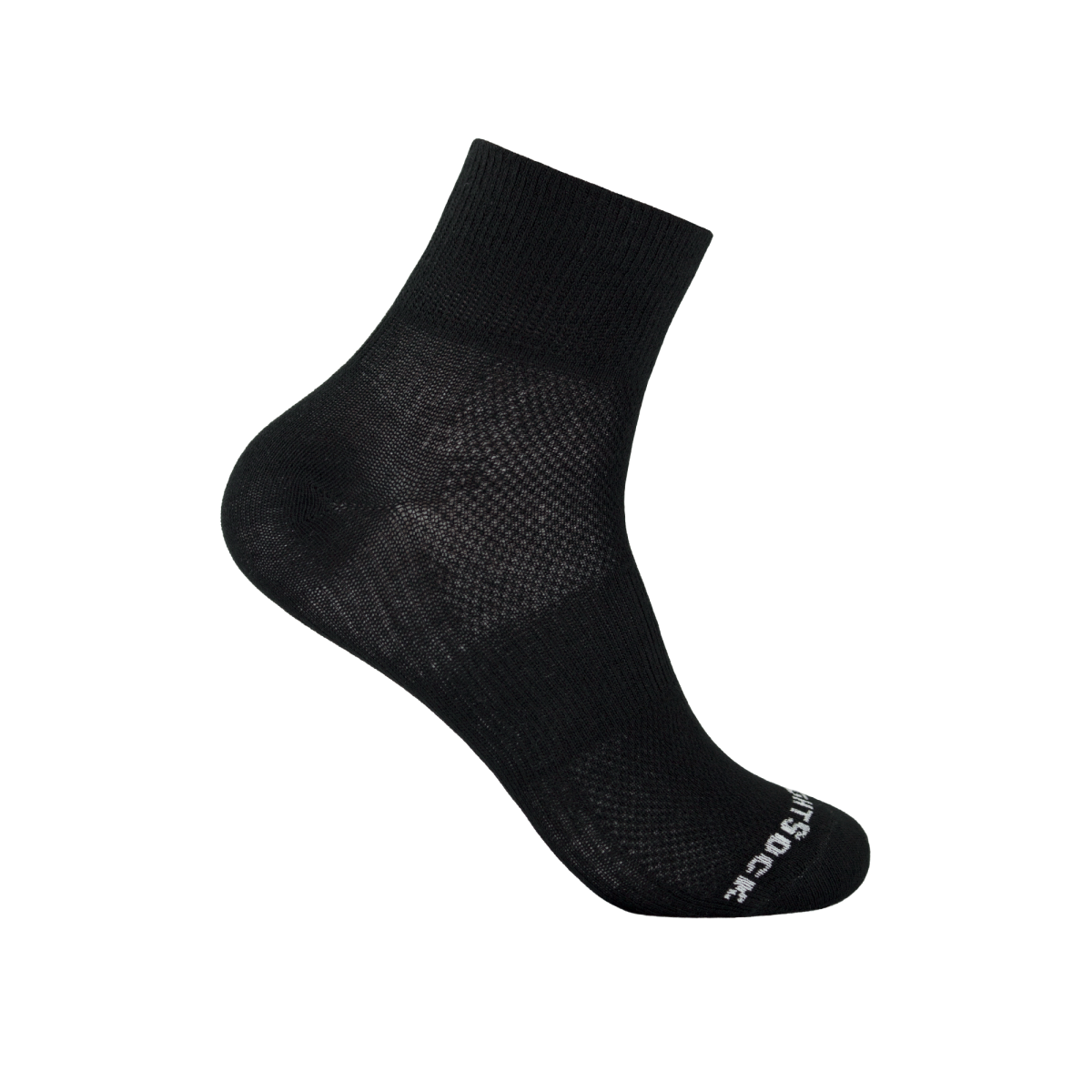 Die wrightsock COOLMESH II QUARTER – Dünn und leicht gegen Blasen am Fuß. Die wrightsock COOLMESH II ist eine mittelhohe (über-den-Knöchel-hoch) dünne Socke mit hoher Atmungsaktivität und geringem Gewicht. ANTI-BLASEN-SYSTEM Besonderheit der wrightsock COOLMESH II QUARTER: Eine eingestrickte Stabilisierungs-Zone im Mittelfußbereich sorgt für sicheren Halt, auch bei Seitwärtsbewegungen Der Fußrücken der Socke ist in einer Netzstruktur gestrickt, um optimal Feuchtigkeit ableiten zu können Die innere Lage ist weiß, ungefärbt und damit fußgesund ausgeführt Die Dri-Wright und High-Tech Fasern in der inneren und in der äußeren Lage sorgen für trockene Füße und Schutz vor Blasenbildung Nachhaltige Produktion mit 35 Mitarbeitern in Burlington, NC, USA. 100 Prozent der verarbeiteten Materialien stammen aus Nordamerika Verpackung aus Recycling-Karton Made in USA Schuhempfehlung: Laufschuhe, leichte Wanderschuhe und Schaft-niedrige Freizeitschuhe Material: Innere Lage: 70% Dri-Wright II Polyester, 26% Nylon, 4% Lycra Äußere Lage:71% Dri-Wright II Polyester, 24% Nylon, 5% Lycra Waschanleitung: Waschbar bei 40C. Kein Trockner. Kein Weichspüler. Größentabelle: S = 34-36,5 M = 37-41,5 L = 42-46 XL = 46,5+ Info über Dri-Wright: Bei Dri-Wright handelt es sich um eine von Wrightenberry Mills entwickelte Polyester-Faser. Polyester hat den Vorteil, wie kaum eine andere Faser sehr schnell zu trocknen und dauerhaft haltbar zu sein. Durch “Kanäle” auf der Faseroberfläche kann Dri-Wright deutlich besser Fussfeuchtigkeit abführen als herkömmliche Polyesterfasern. Hinweis: Abbildung kann farblich leicht abweichen.