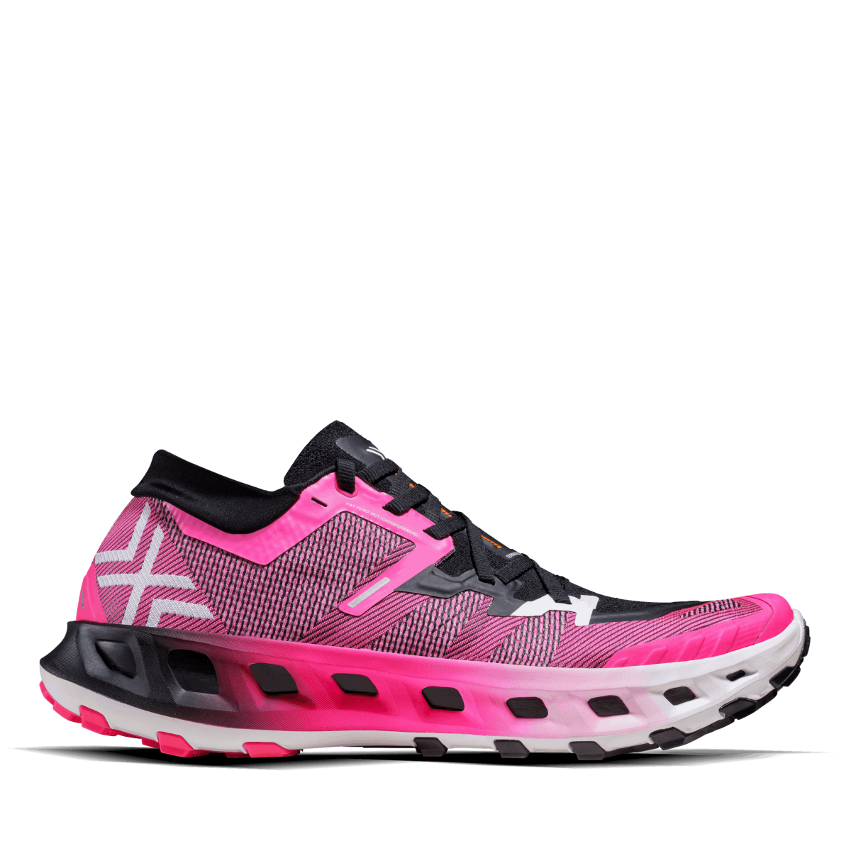 X-BIONIC TERRASKIN X02 Damen – Hochleistungstrailrunning für alle Distanzen Der X-BIONIC TERRASKIN X02 Damen setzt neue Maßstäbe im Trailrunning-Bereich und kombiniert modernste Technologien mit einer vielseitigen Performance , die sich für Läuferinnen jeder Erfahrungsstufe eignet. Als Teil der innovativen Terraskin-Serie bietet dieses Modell eine perfekte Mischung aus Stabilität, Grip und Komfort , ohne die Steifigkeit einer Karbonplatte, sodass sich das Laufgefühl noch natürlicher anfühlt. Das Jacquard-Mesh-Obermaterial zeichnet sich durch eine extreme Widerstandsfähigkeit und Haltbarkeit aus und schützt deine Füße vor äußeren Einflüssen wie Steinen, Ästen oder Schmutz. Dank eines elastischen Anpassungssystems sitzt der Schuh perfekt am Fuß und bietet hohen Tragekomfort, egal ob auf kurzen oder langen Distanzen. Für optimalen Grip sorgt die Vibram® Megagrip-Außensohle , die speziell für Trailrunnerinnen entwickelt wurde, die unter verschiedensten Bedingungen – von feuchtem Waldboden bis zu felsigen Anstiegen – maximale Kontrolle und Traktion benötigen. Ein besonderes Highlight: Der Schuh wird mit einer speziell entwickelten X-BIONIC Socke geliefert, die für zusätzliche Unterstützung, Atmungsaktivität und Stabilität im Schuh sorgt. Produktdetails: Jacquard-Mesh-Obermaterial : Widerstandsfähig, langlebig und schützend. Elastisches Anpassungssystem : Perfekte Passform für hohen Komfort. Vibram® Megagrip-Außensohle : Hervorragende Traktion auf jedem Untergrund. Ohne Karbonplatte : Für ein natürlicheres Laufgefühl und vielseitige Einsatzmöglichkeiten. Für alle Distanzen geeignet : Von kurzen Trailruns bis zu längeren Herausforderungen. Inklusive X-BIONIC Socke : Zusätzlicher Halt, Atmungsaktivität und Stabilität. Gewicht: 288g Sprengung: 4mm (27-23mm) Mit dem X-BIONIC TERRASKIN X02 Damen erhältst du einen leistungsstarken Trailrunningschuh , der sich perfekt an unterschiedliche Läuferinnen und Geländeformen anpasst – für ein sicheres, dynamisches und komfortables Laufgefühl auf jedem Trail.